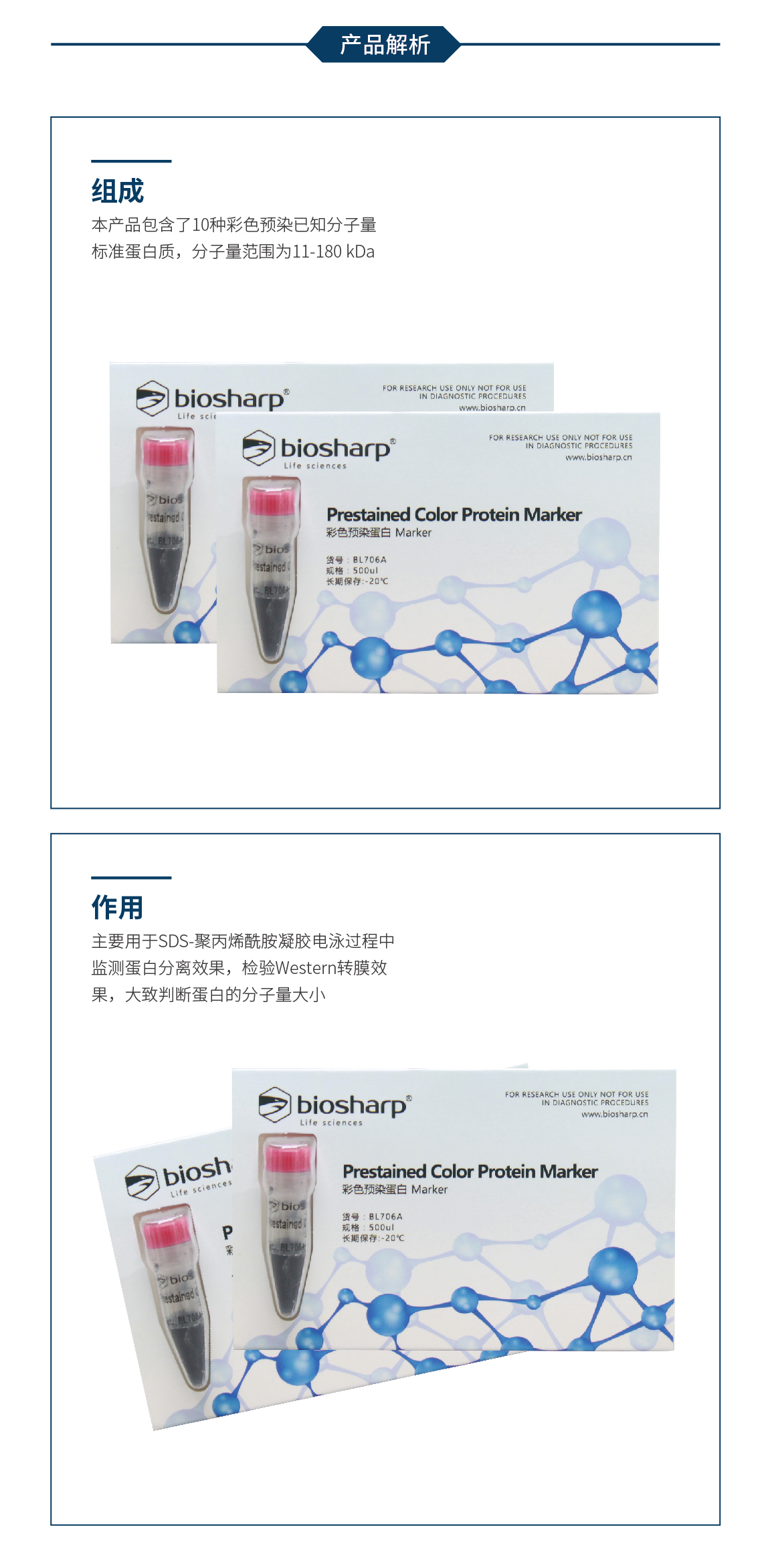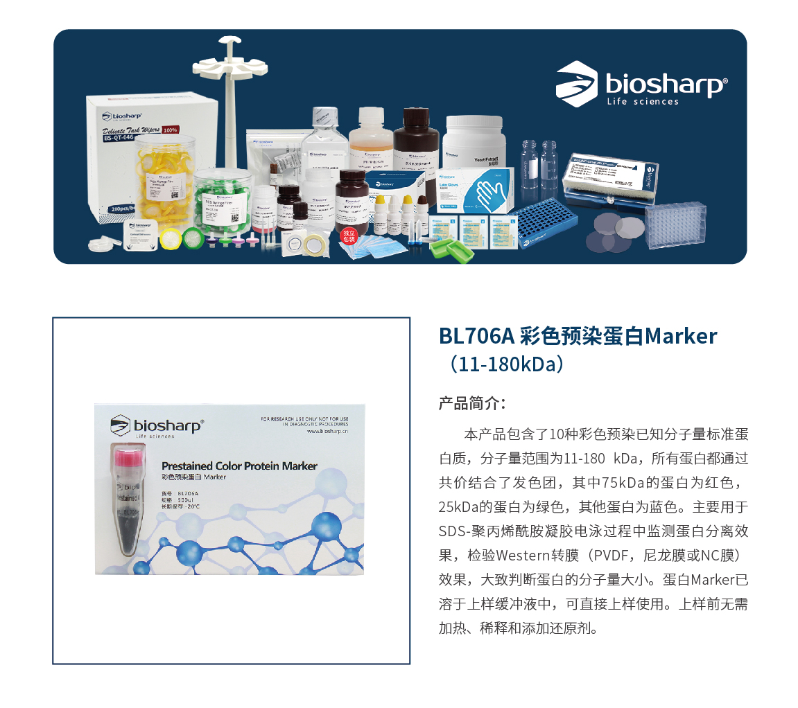 白鲨Biosharp BL706A 彩色预染蛋白Marker(11-180kDa)