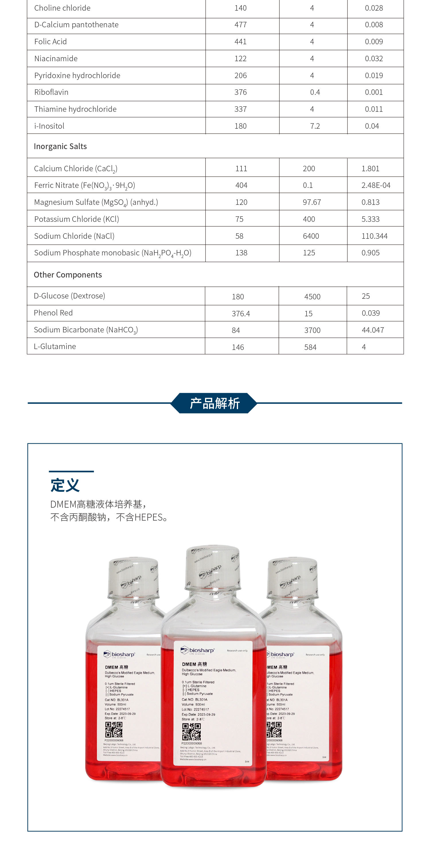 biosharp BL301A DMEM高糖液体培养基(不含丙酮酸钠不含HEPES)