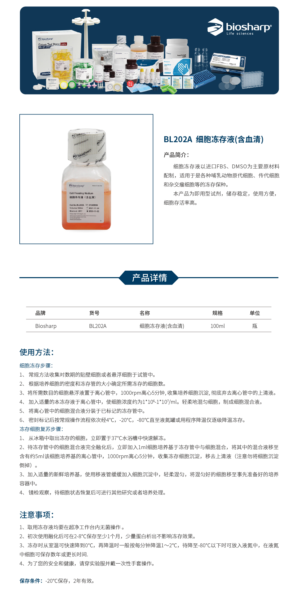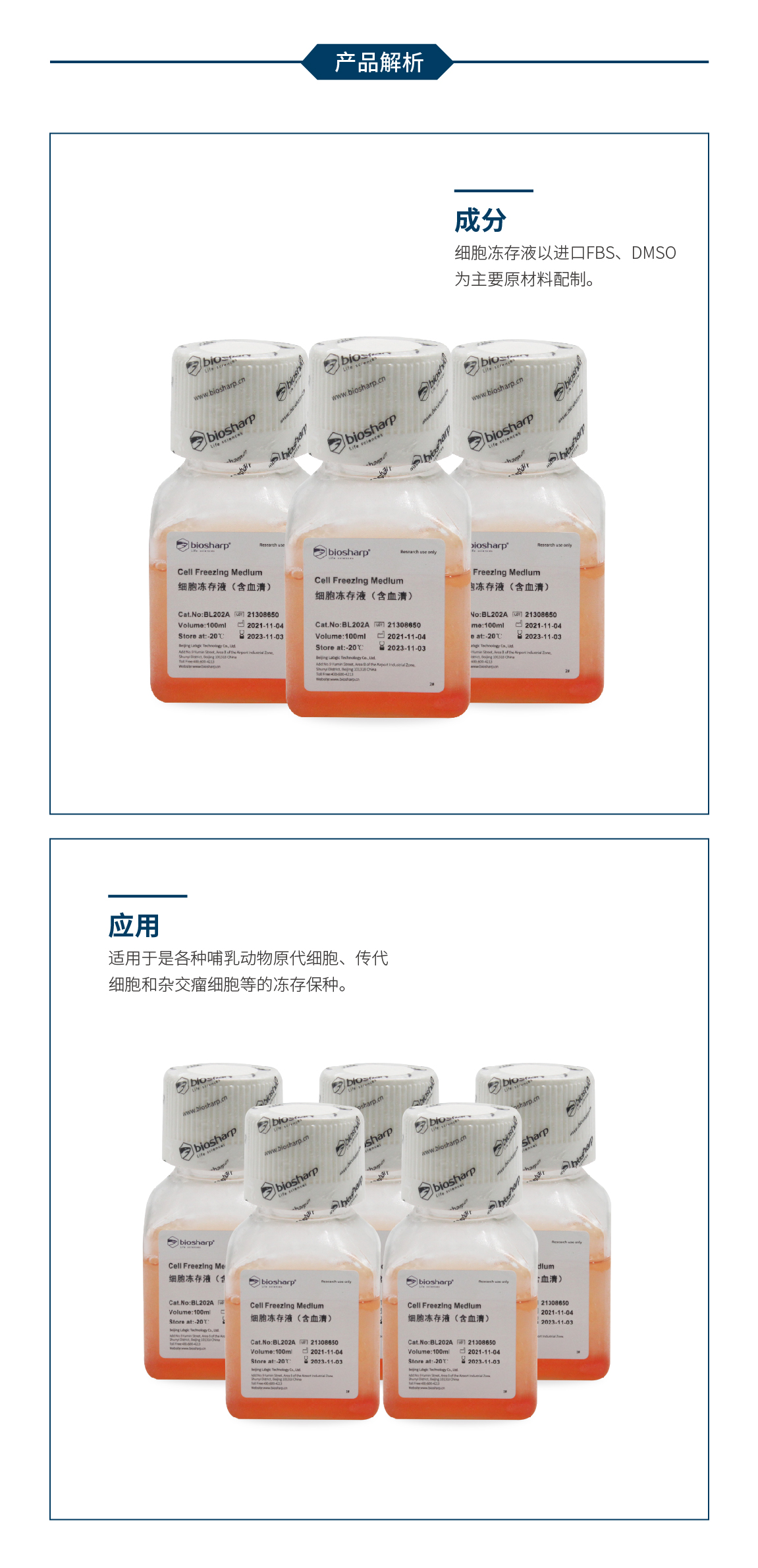 biosharp BL202A 细胞冻存液(含血清) 100ml 进口FBS DMSO配制