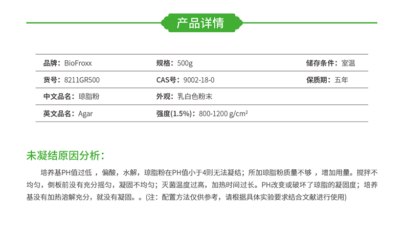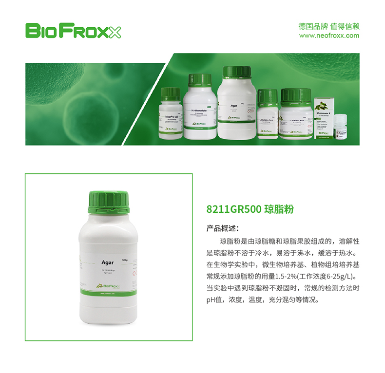 德国进口BioFroxx 8211KG001 8211GR500 琼脂粉 Agar 1kg/500g