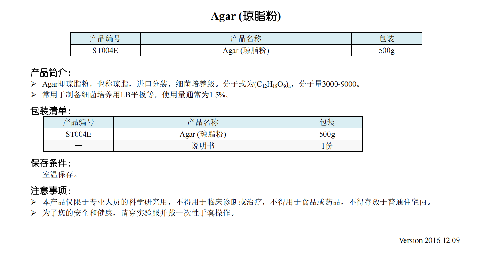 碧云天 Beyotime ST004D ST004E Agar (琼脂粉) 100g/500g