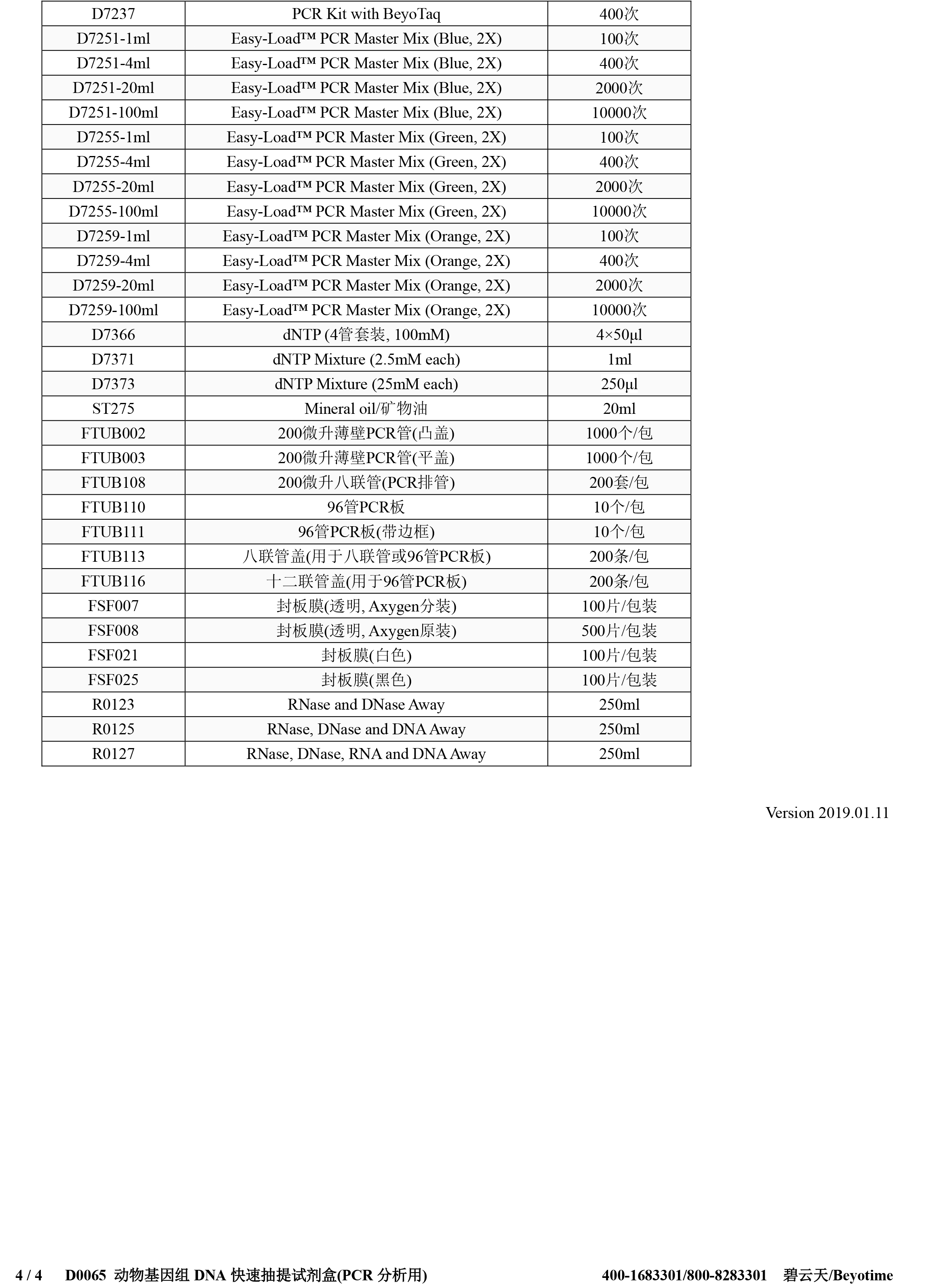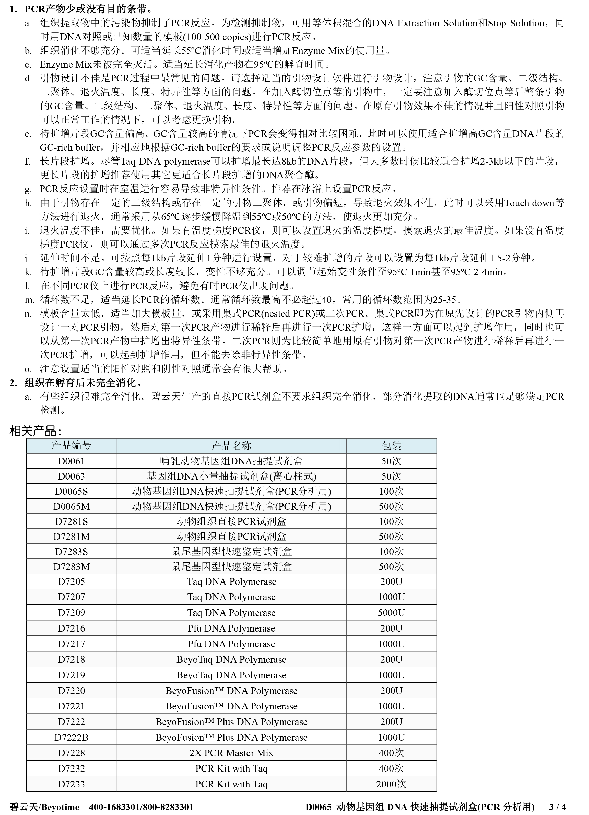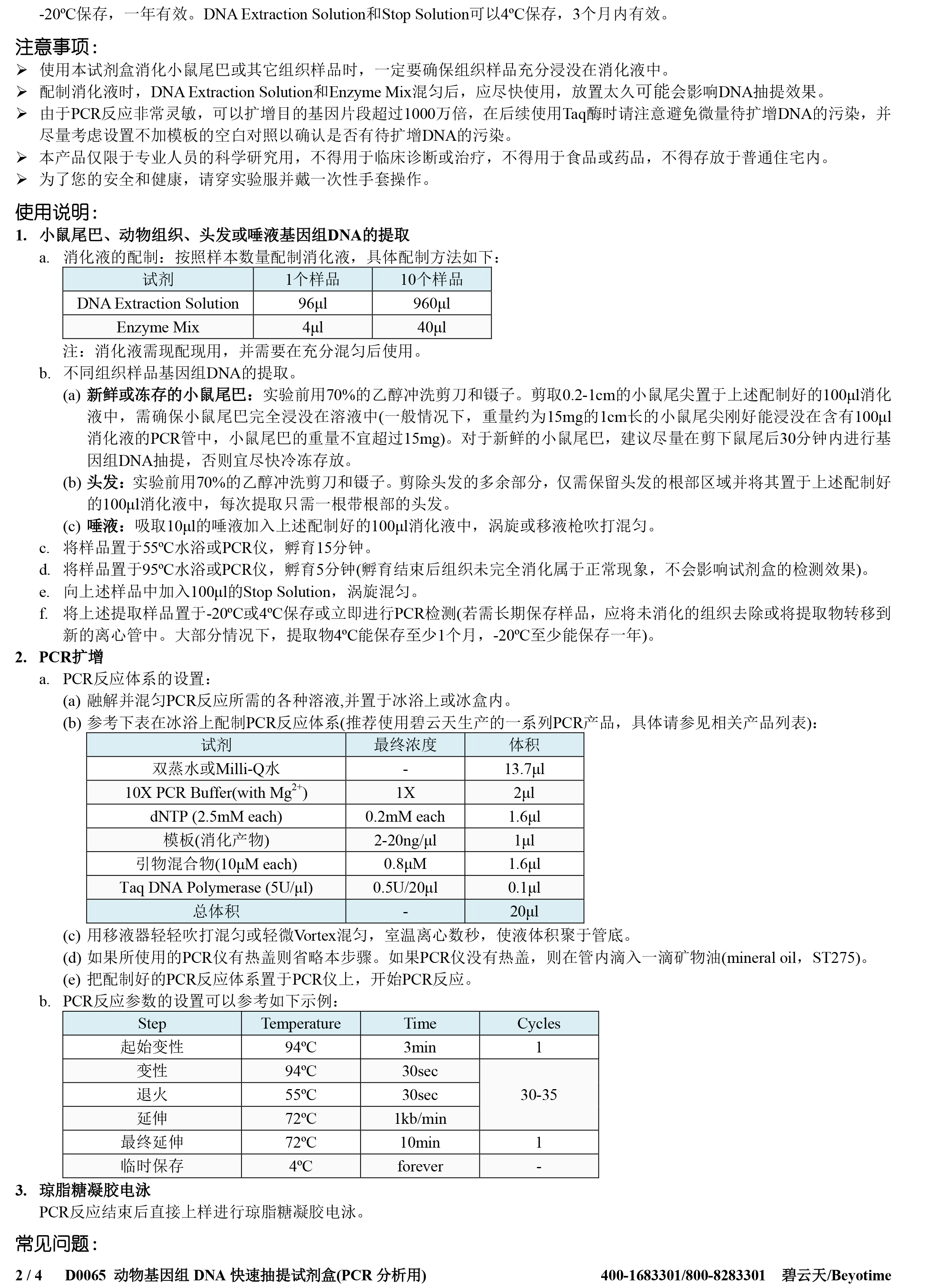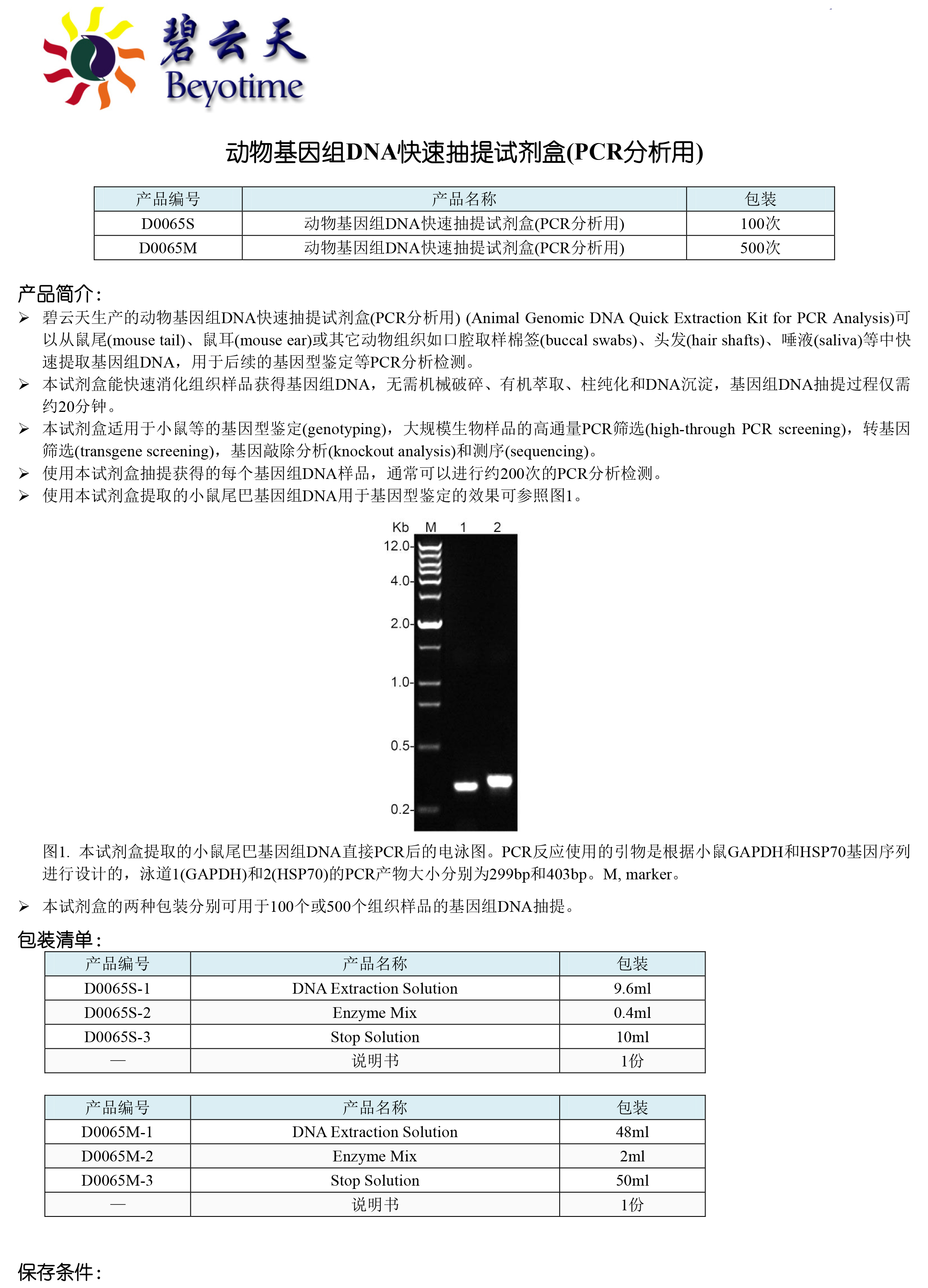 碧云天 D0065S D0065M 动物基因组DNA快速抽提试剂盒(PCR分析用)