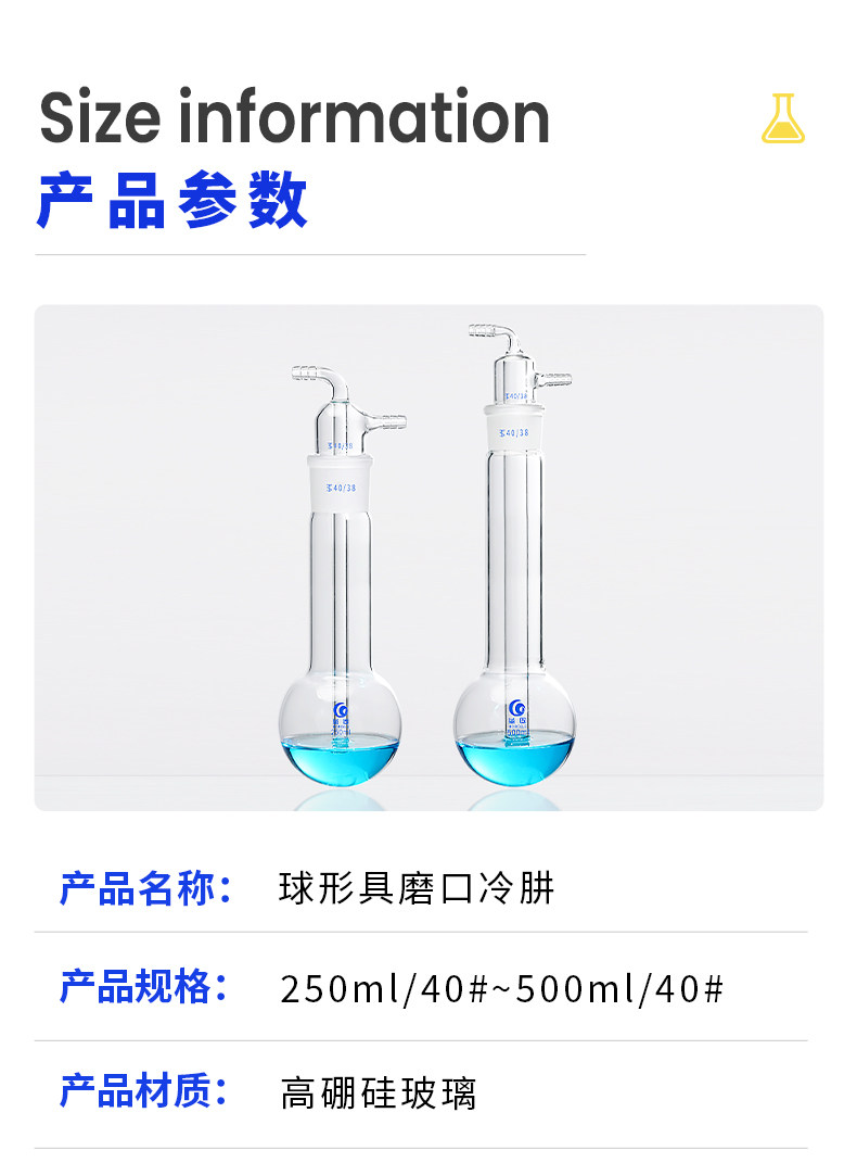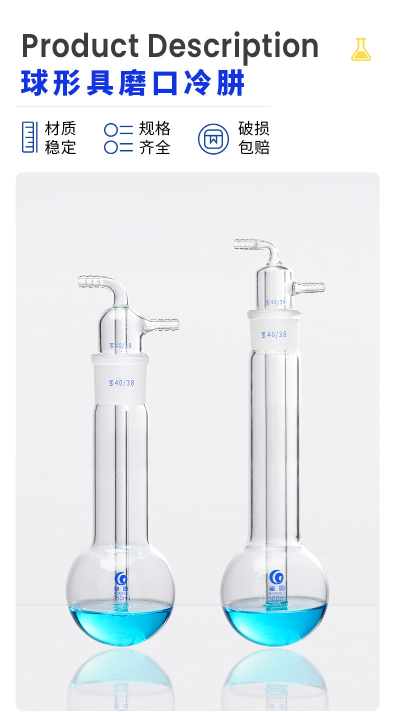 垒固球形具磨口冷肼 高硼硅玻璃 实验室玻璃冷肼250ml/40# 500ml/40#