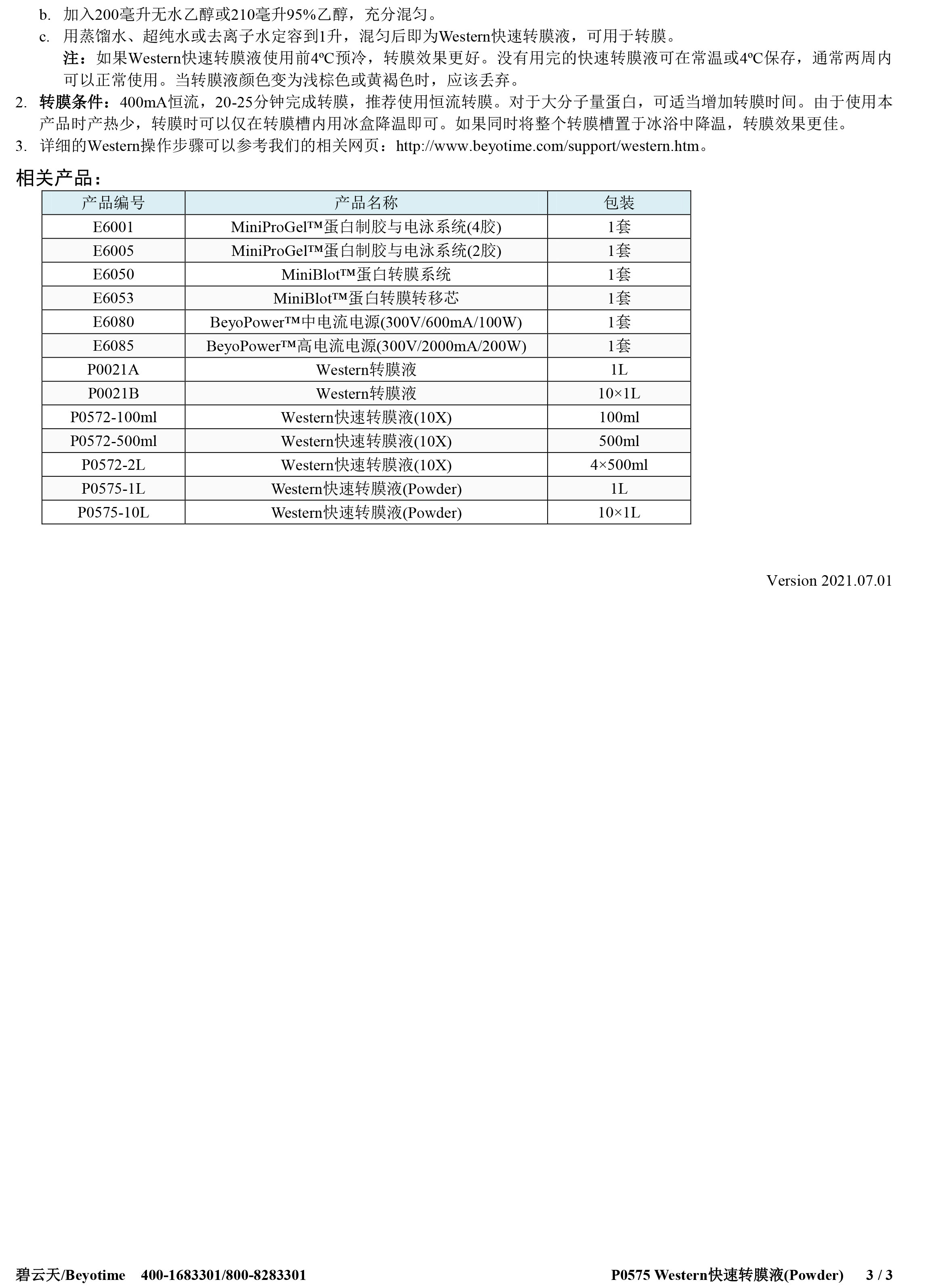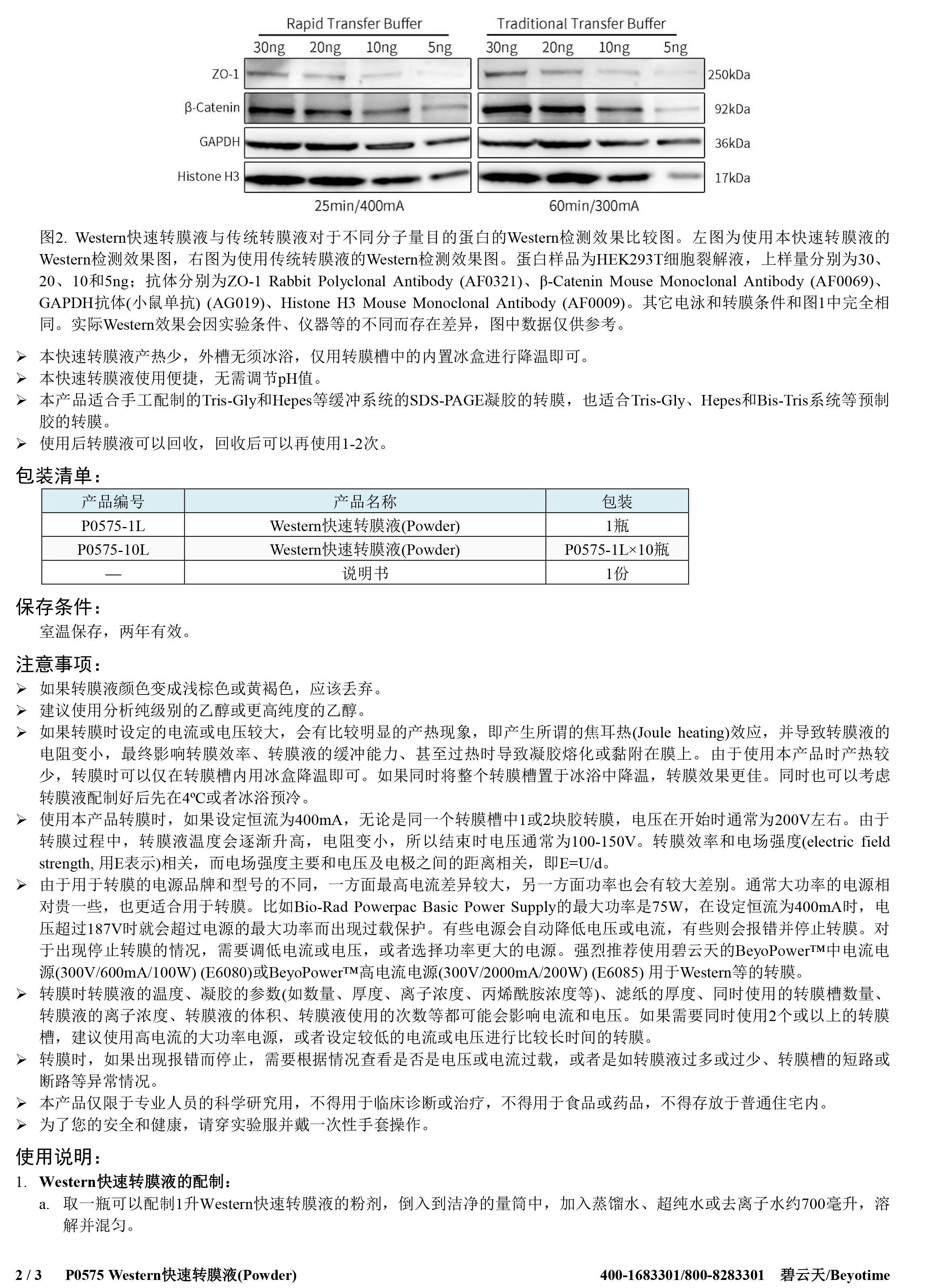 碧云天 Beyotime P0575-1L P0575-10L Western快速转膜液(Powder)
