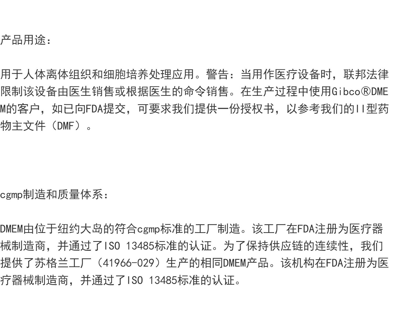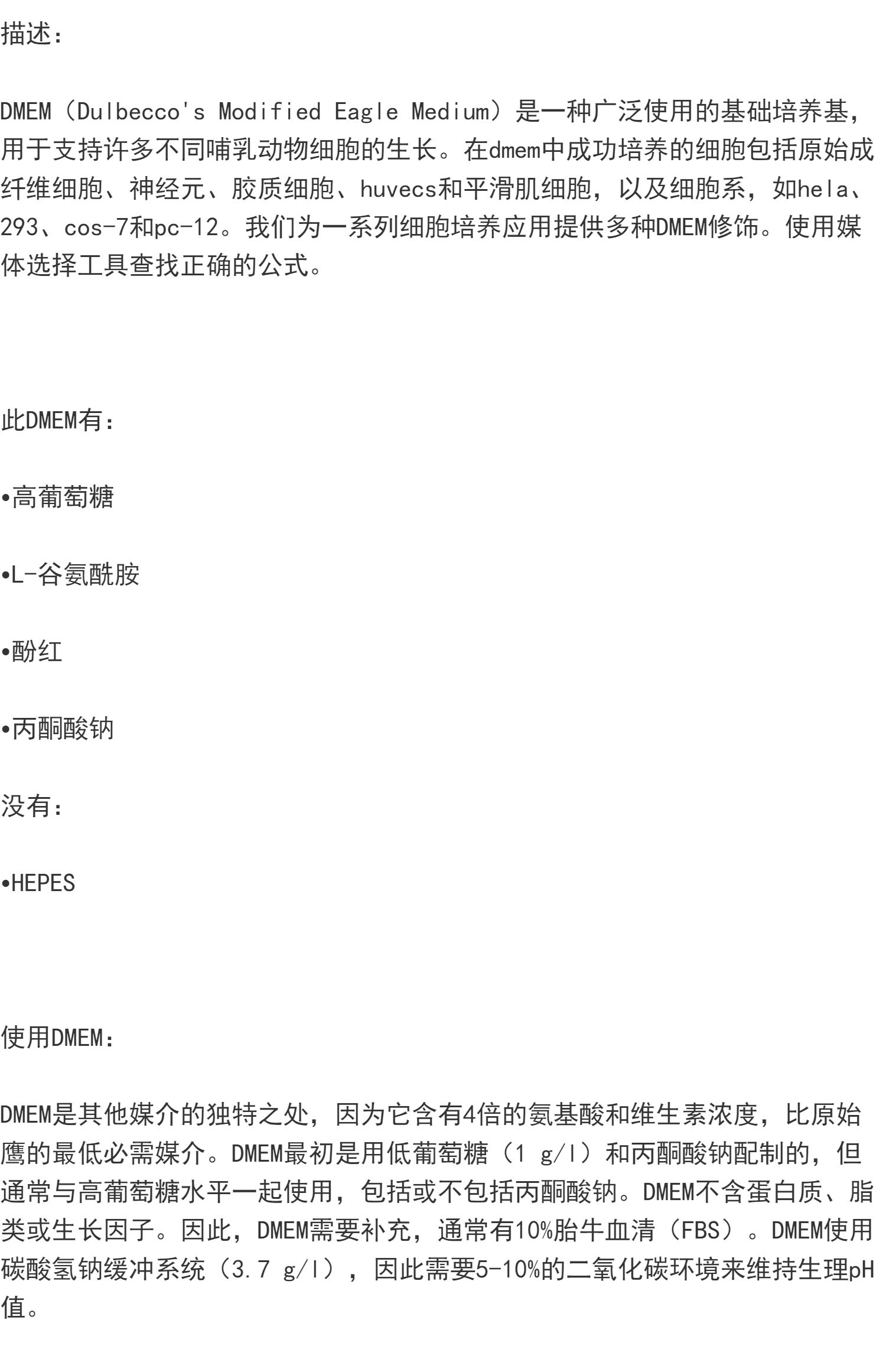 Gibco C11995500BT DMEM高糖培养基 含L-谷氨酰胺丙酮酸钠不HEPES