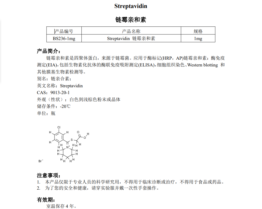 白鲨 Biosharp BS236-1mg 链霉亲和素