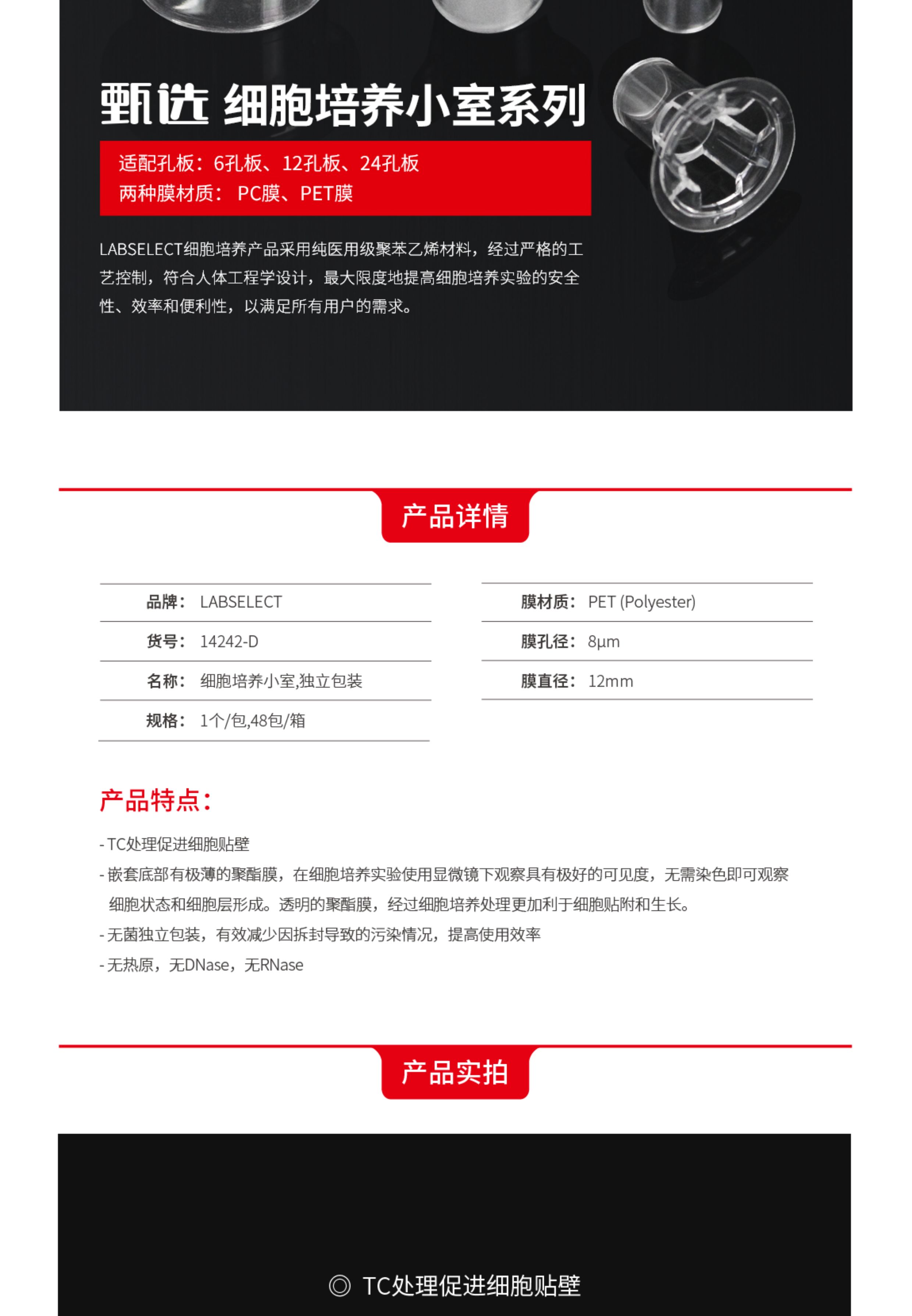 甄选 14242-D 细胞培养小室,独立包装(PET膜,12mm,孔径8.0μm)
