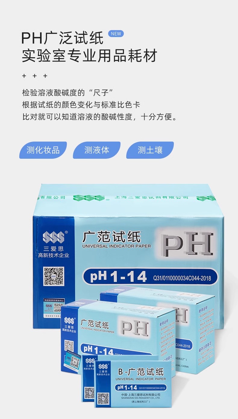 正品上海三爱思 ph试纸 广泛试纸1-14酸碱度 80次/本 20本/盒