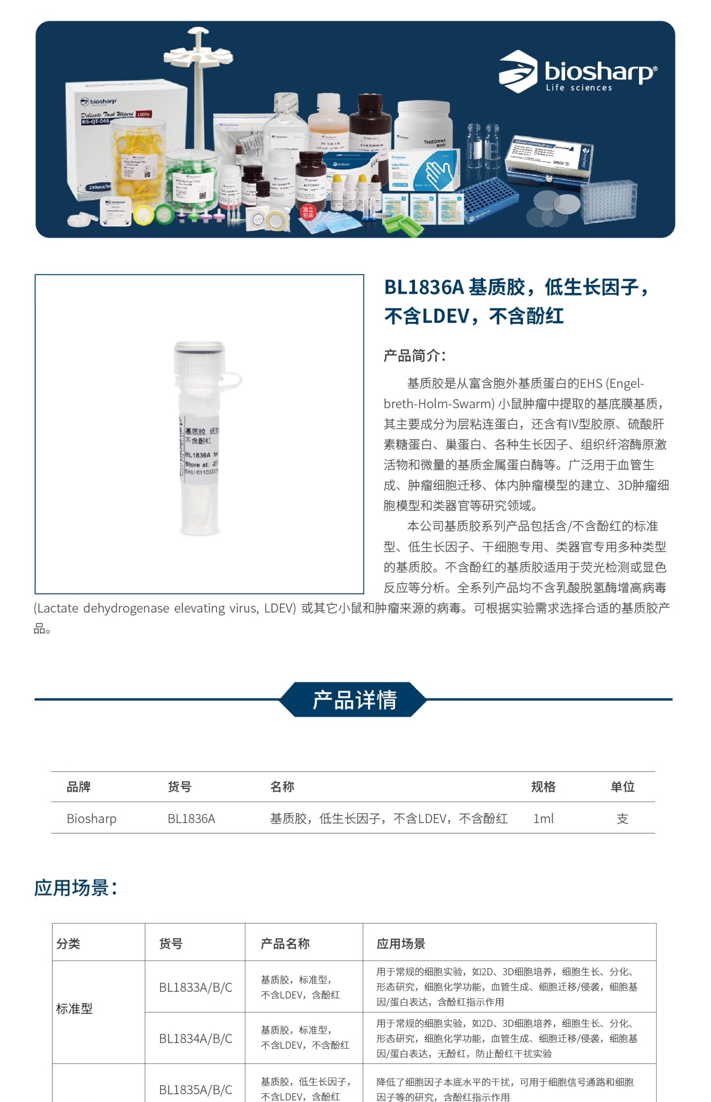 Biosharp白鲨 BL1836A 基质胶 低生长因子 不含LDEV 不含酚红