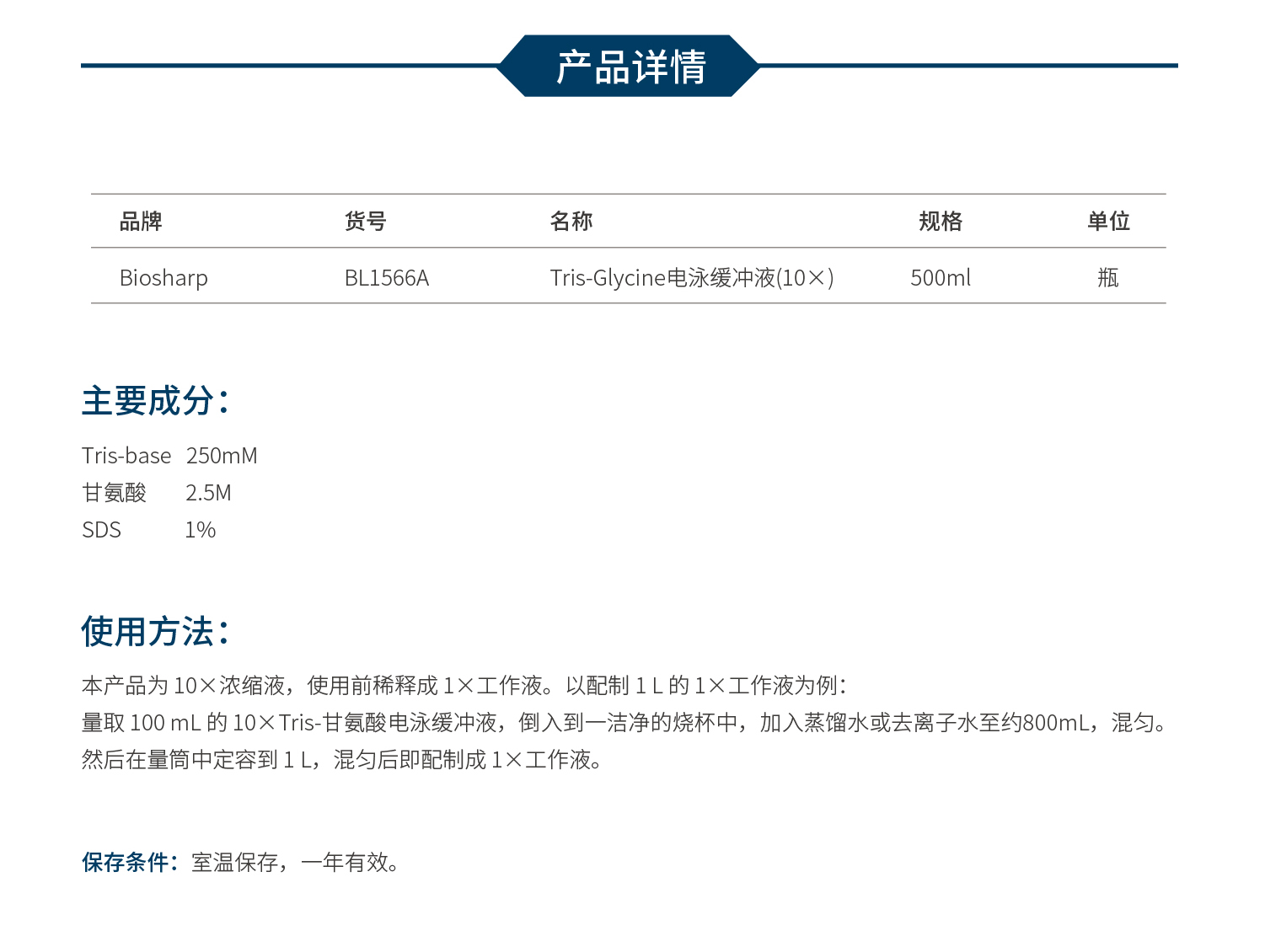 Biosharp/白鲨 BL1566A Tris-Glycine-SDS电泳缓冲液(10×)