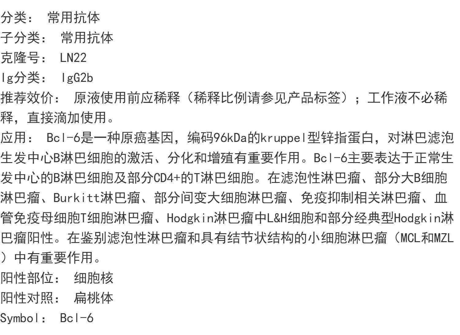 中杉金桥 ZM-0011 bcl-6抗体试剂(免疫组织化学)