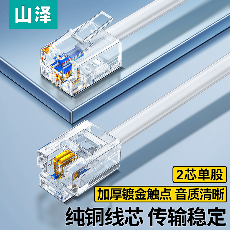 山泽电话线2两芯4四芯纯铜固定座机加长成品连接线带水晶头对接头