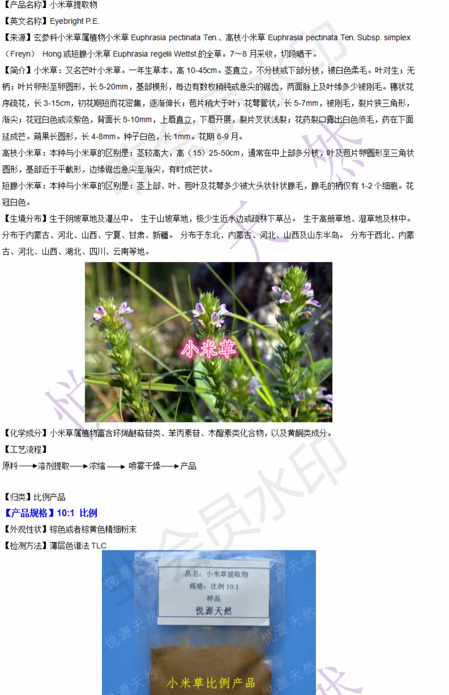 小米草10:1比例提取 实验科研用萃取浓缩粉 100g 包邮 附赠瓶子勺