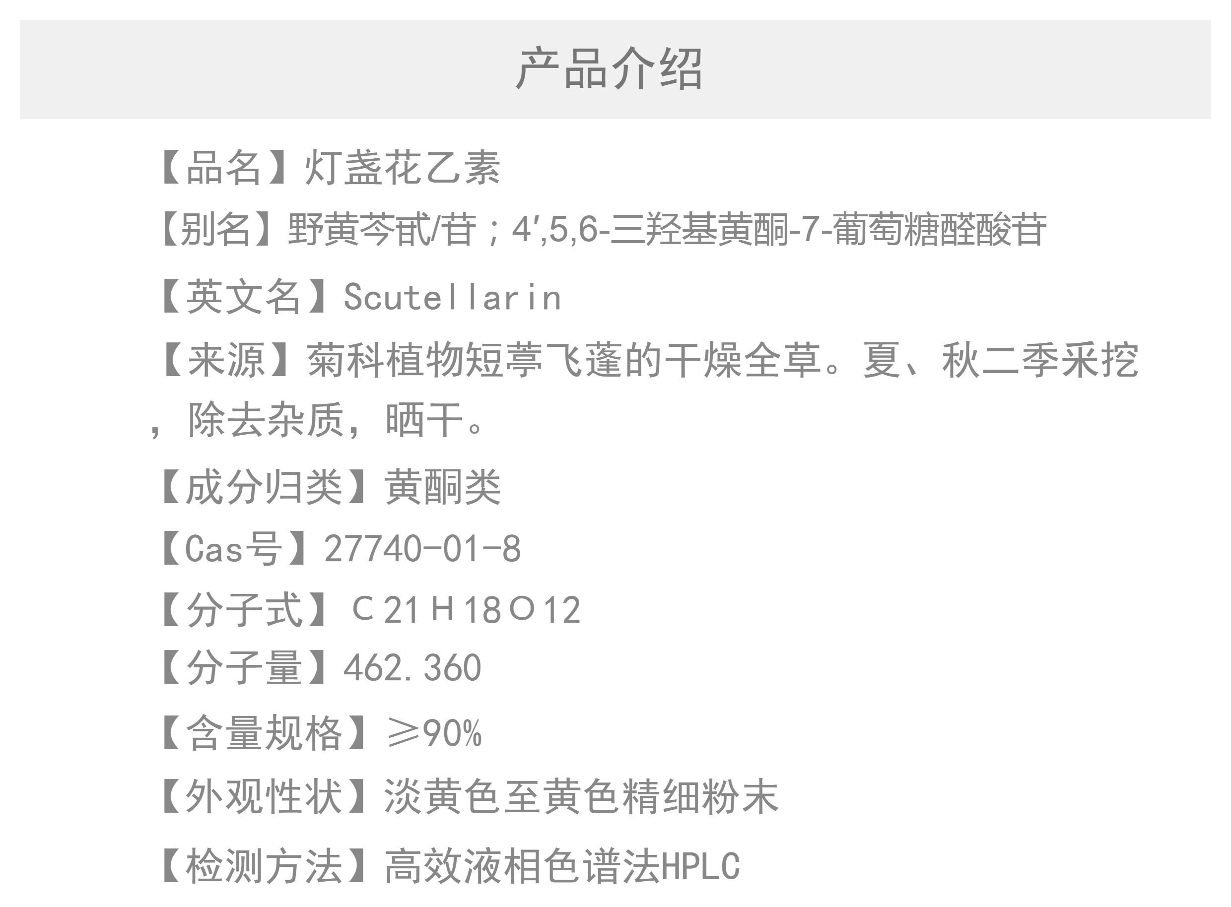 灯盏花乙素 90%Scutellarin 黄酮类 天然实验科研 5g 试剂 高纯度