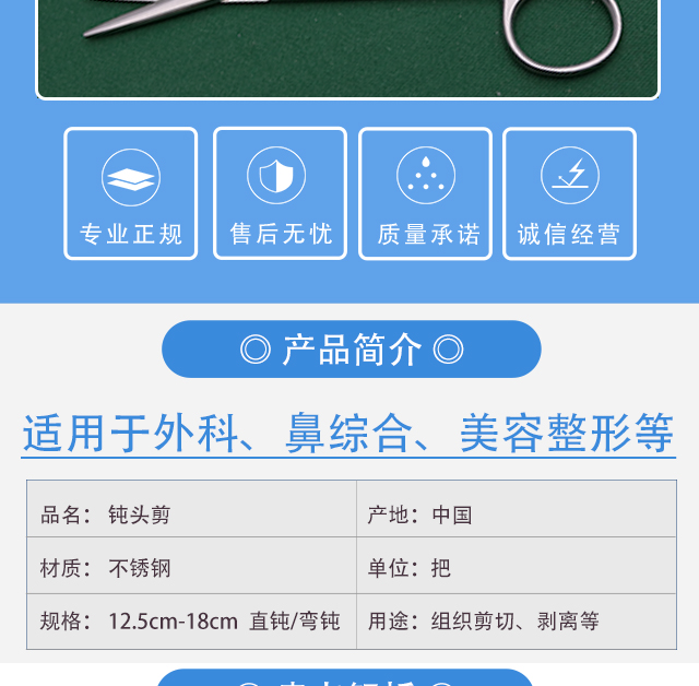 不锈钢组织钝剪金柄鼻部剪外科圆头美容整形鼻腔剥离综合手术剪刀