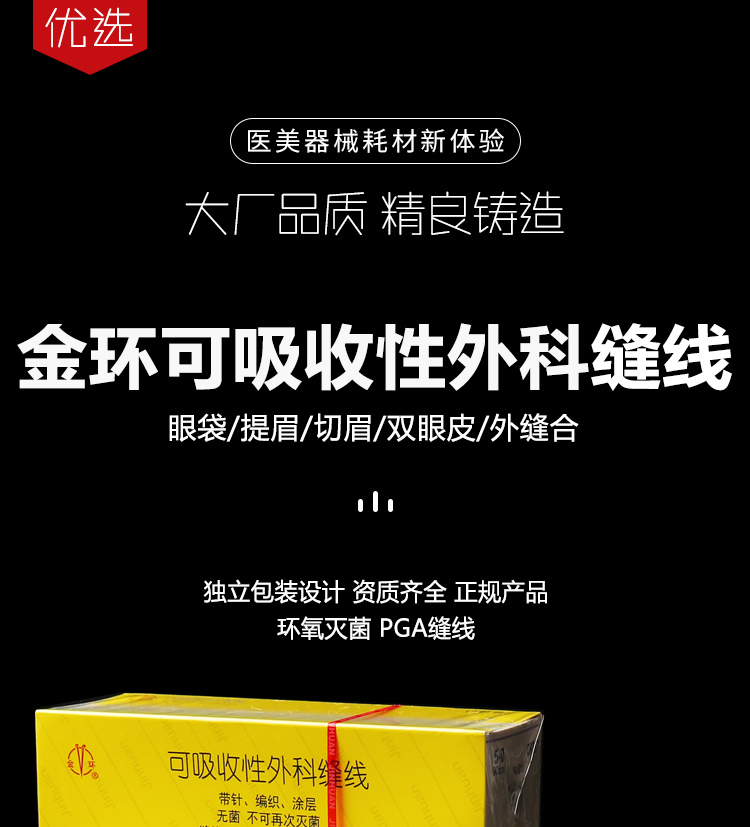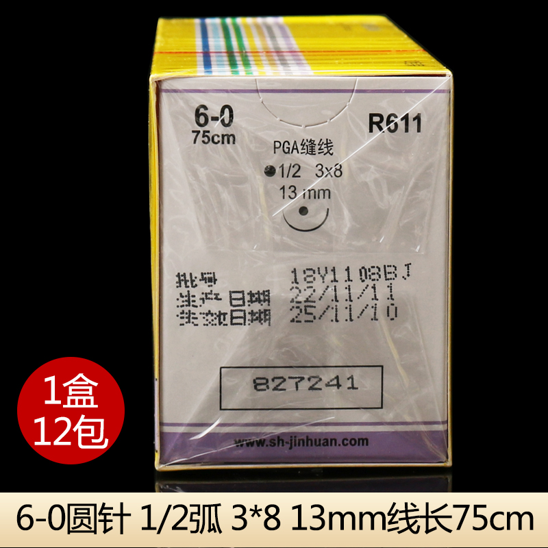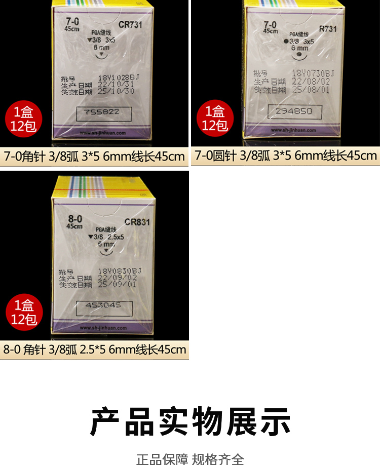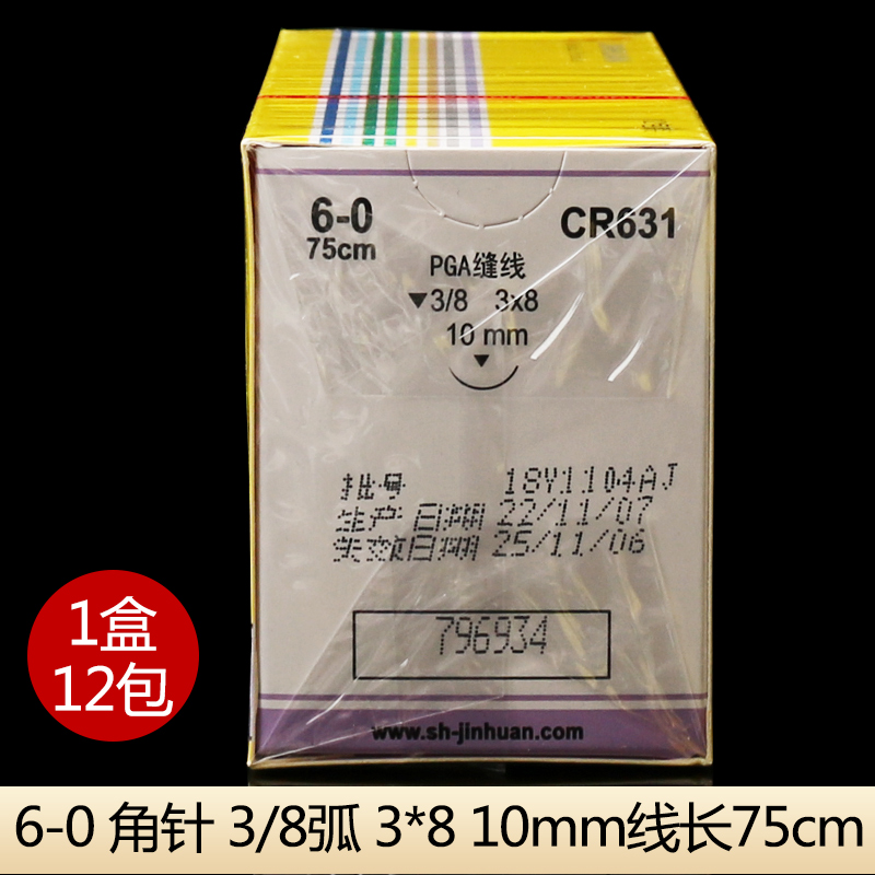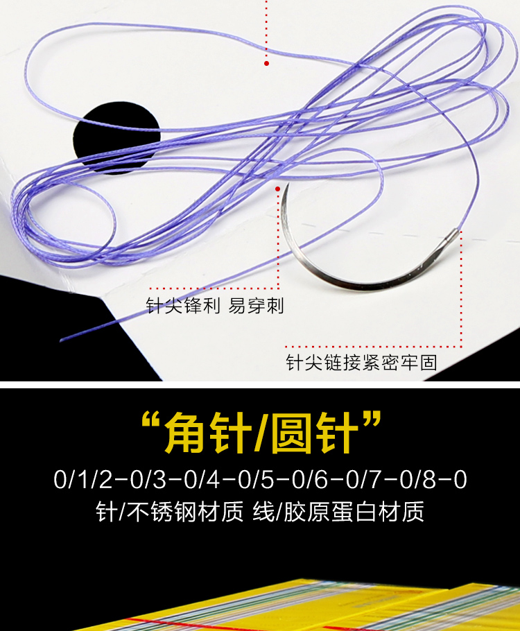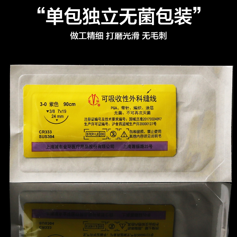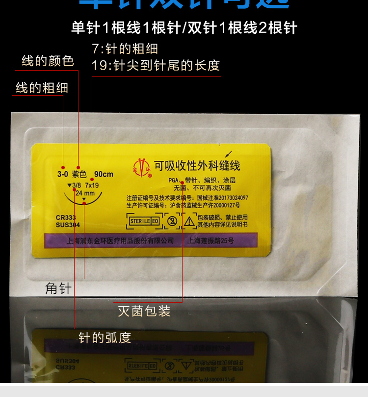 上海金环可吸收缝合线带针医用外科手术7/6/5-0双眼皮提眉PGA角针