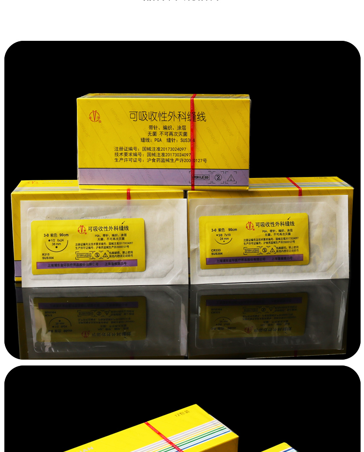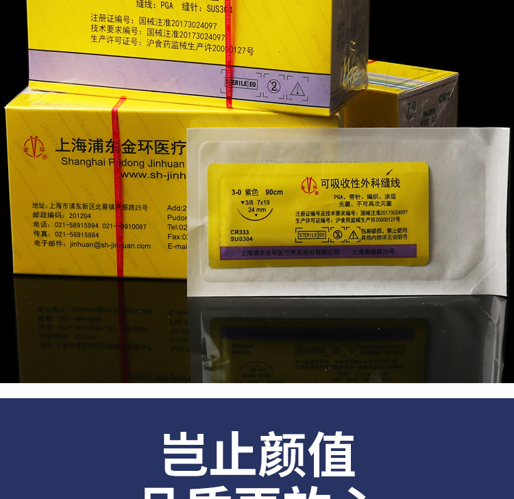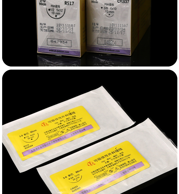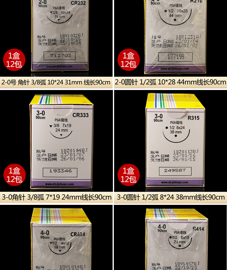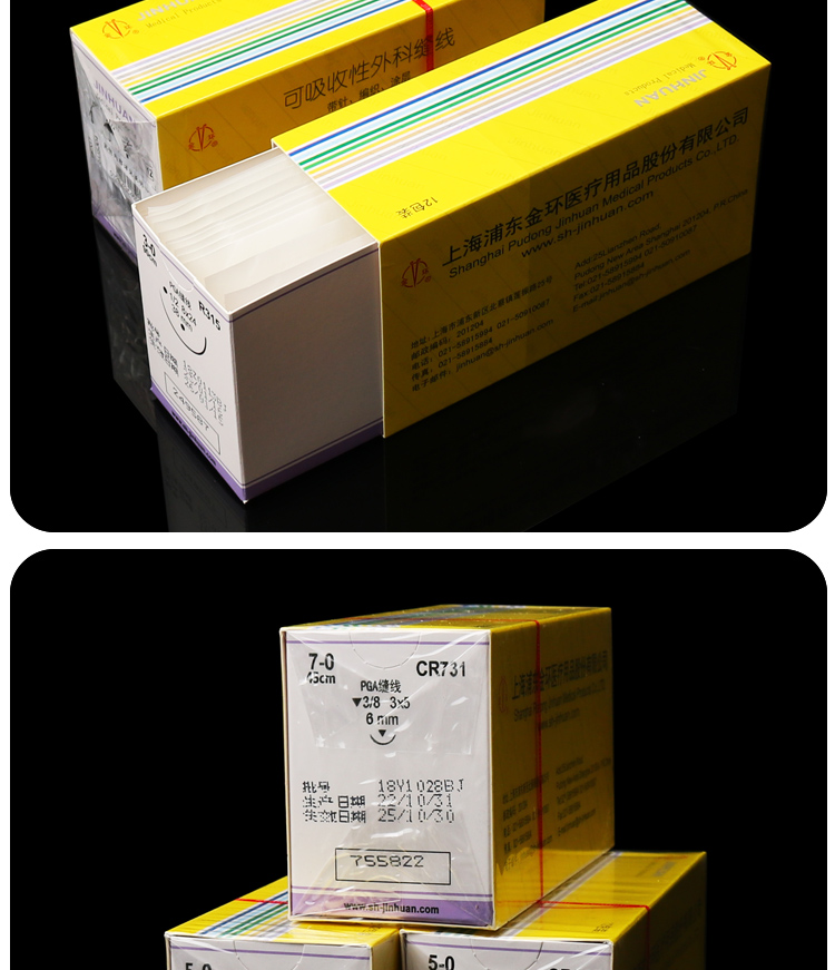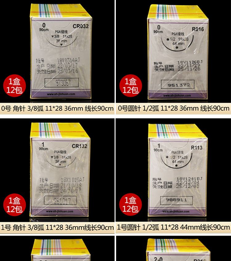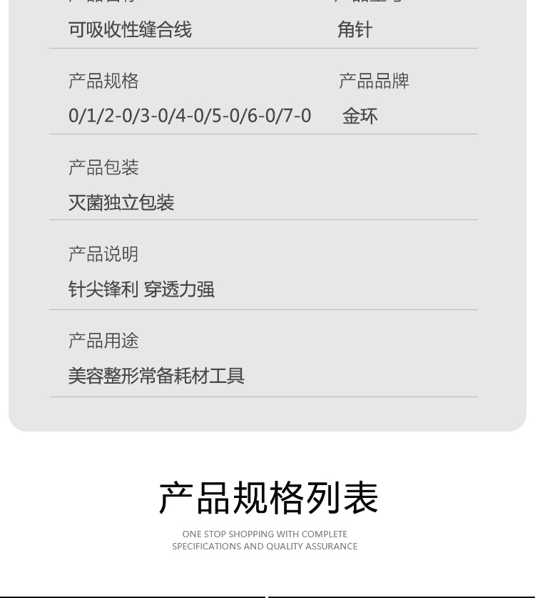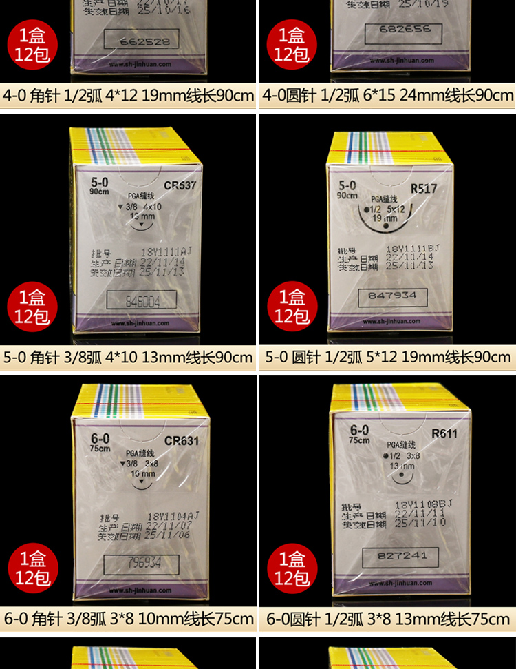 上海金环可吸收缝合线带针医用外科手术7/6/5-0双眼皮提眉PGA角针