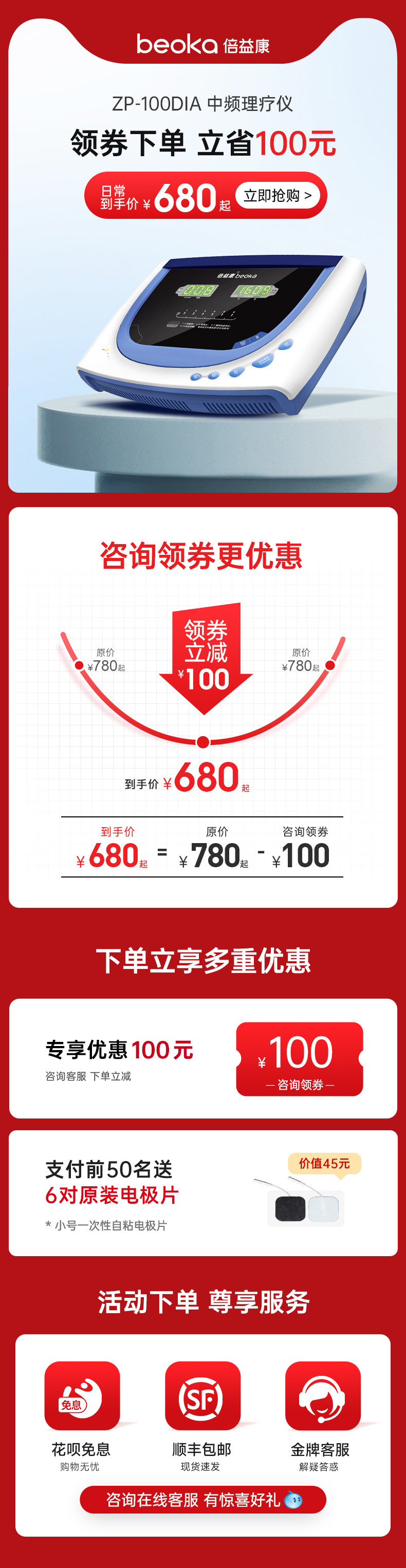 倍益康DIA家用中频理疗仪脉冲治疗仪按摩仪器腰椎间盘突出治疗器