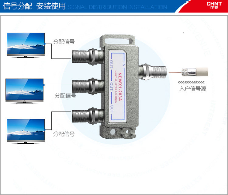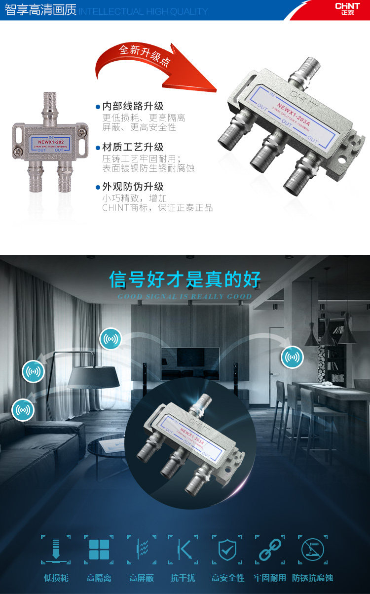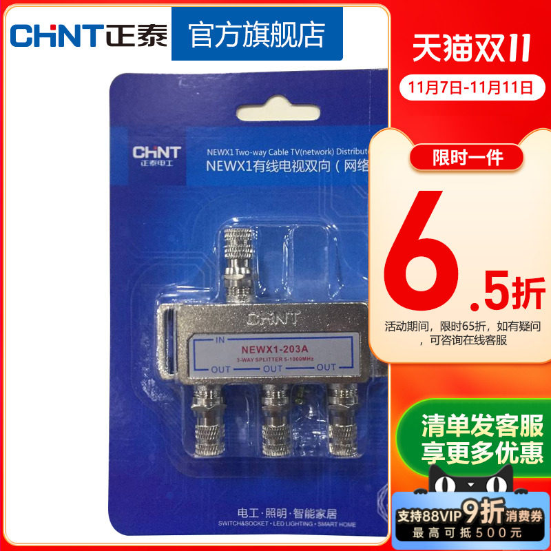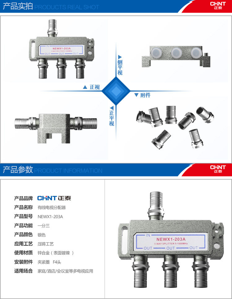 正泰电视分配器 一分三闭路电视分配器 NEWX1-203A 型号 有线电视讯号分配器