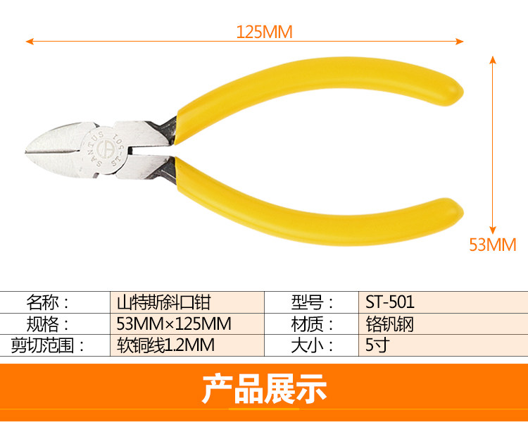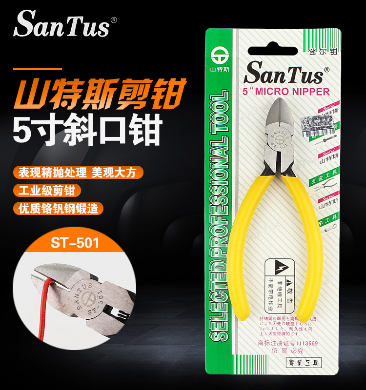 山特斯斜口钳子水口钳电子钳尖嘴咀ST-501迷你斜嘴钳5寸电工学生