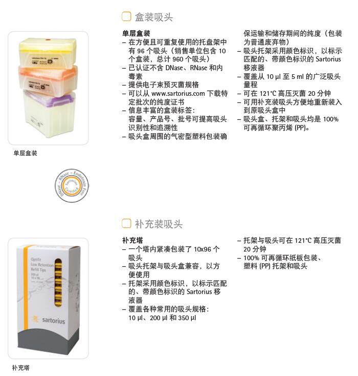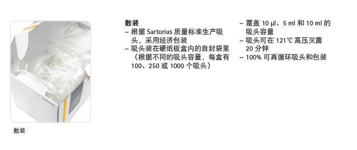 赛多利斯吸头管嘴 5ml袋装 盒装   780300 / 780304 / 780308