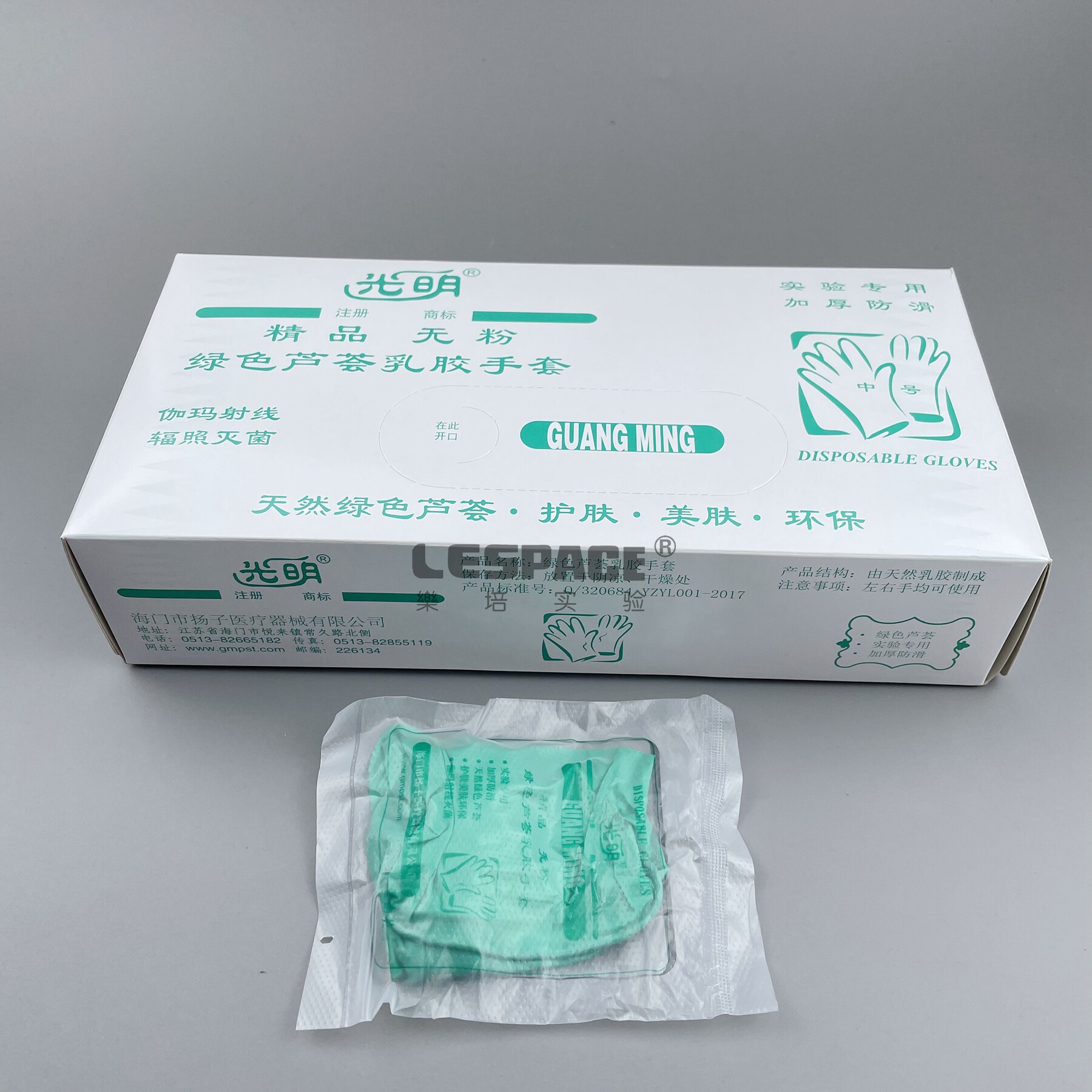 光明牌 无粉芦荟乳胶绿色橡胶手套 灭菌独立包装25副/盒 科研实验