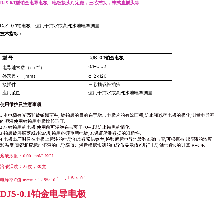 DJS-0.1电导电极(纯水电导电极)/电导传感器/高纯水电极保修