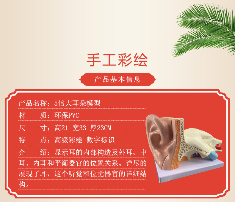 5倍放大耳解剖模型 耳朵放大教学模型 大耳解剖器官耳朵构造 模型