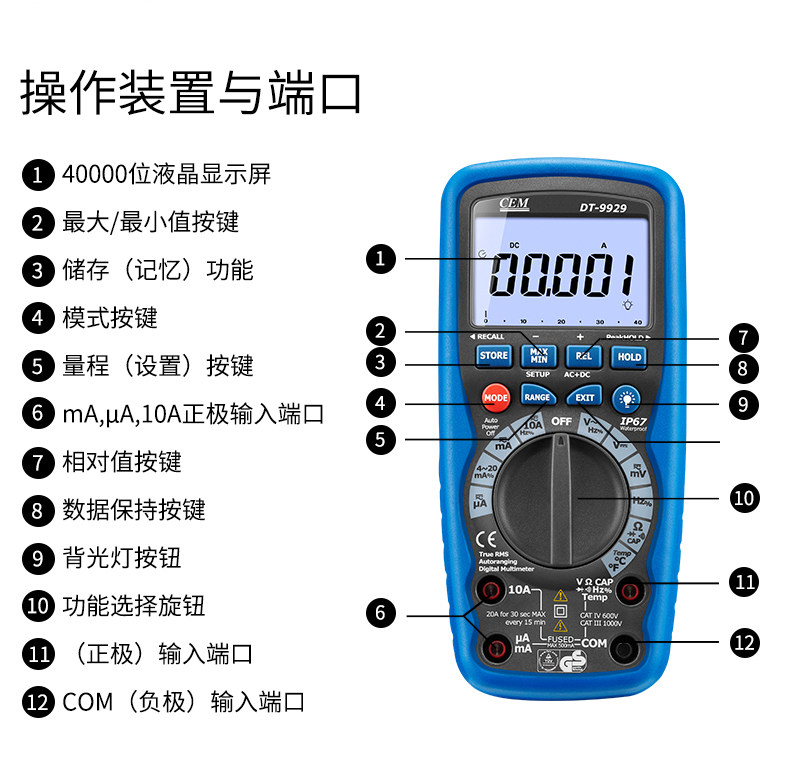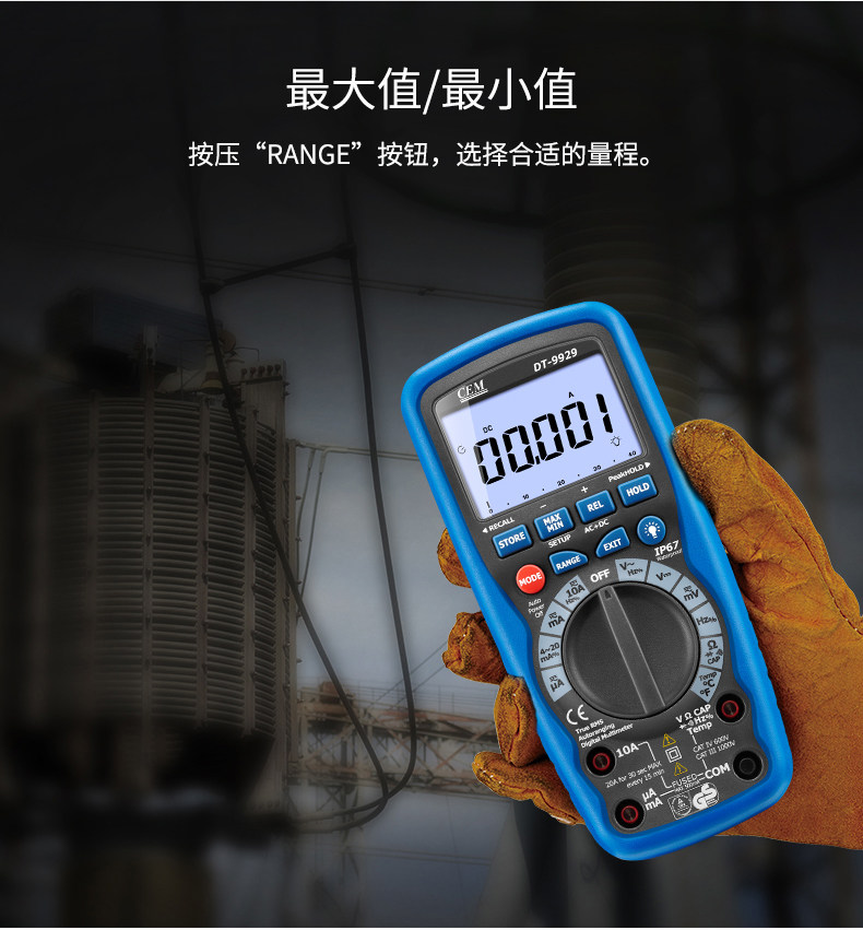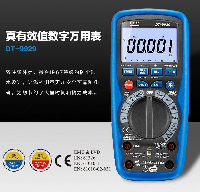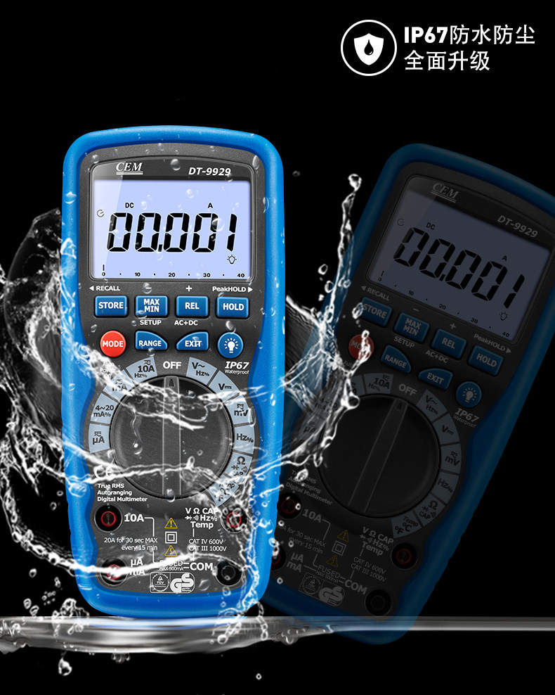 CEM华盛昌专业防水型数字万用表 1000V过载保护真有效值DT-9929