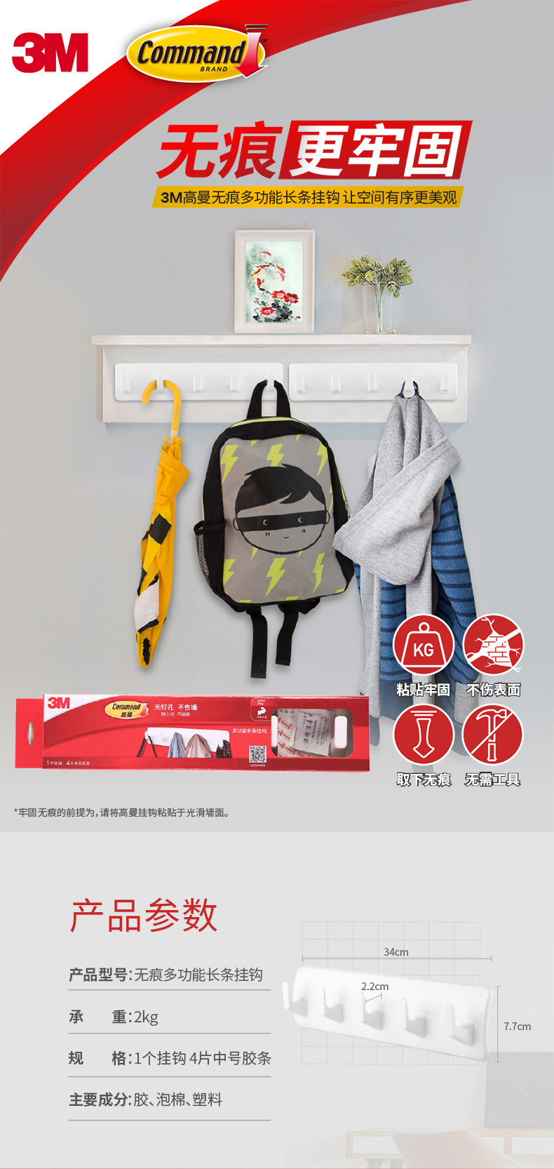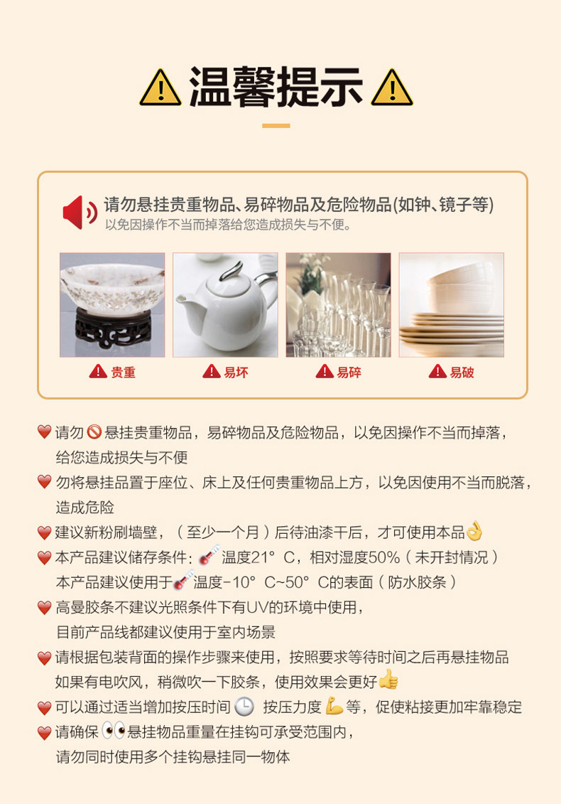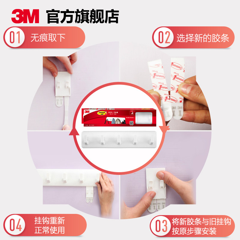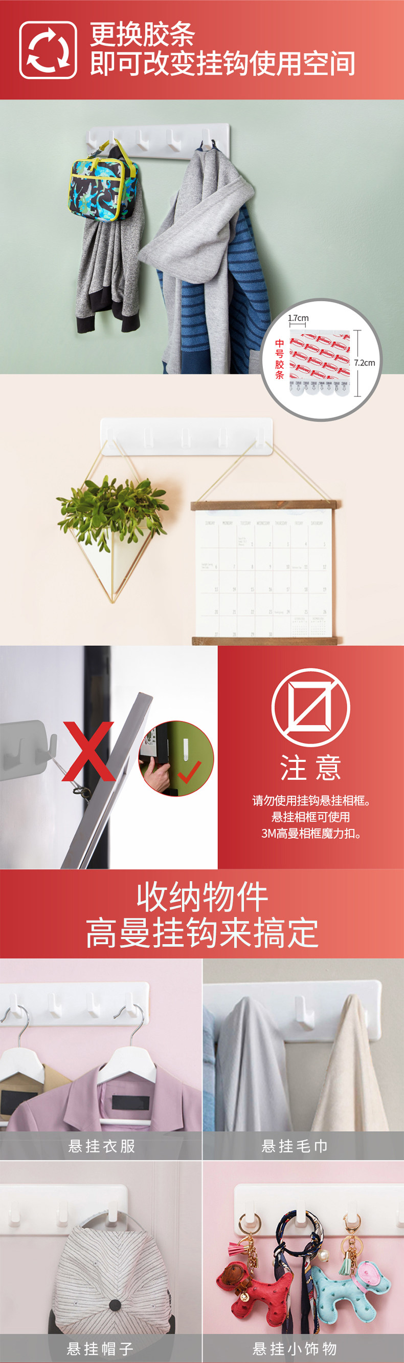 3M高曼常规挂钩无痕胶条多功能挂钩强力衣服挂钩卧室门后挂钩 CBG