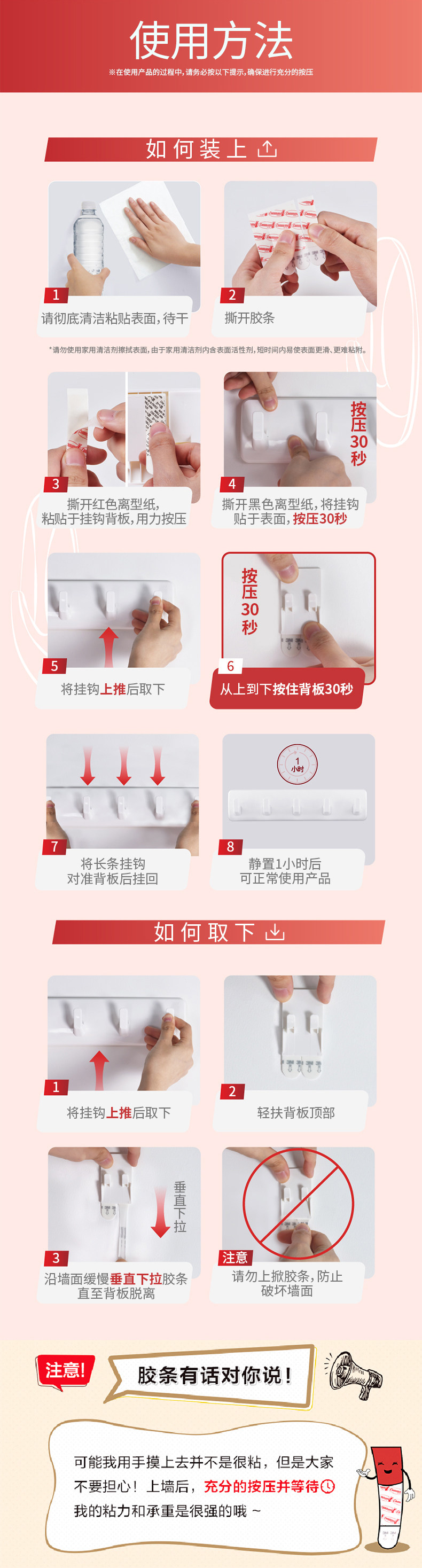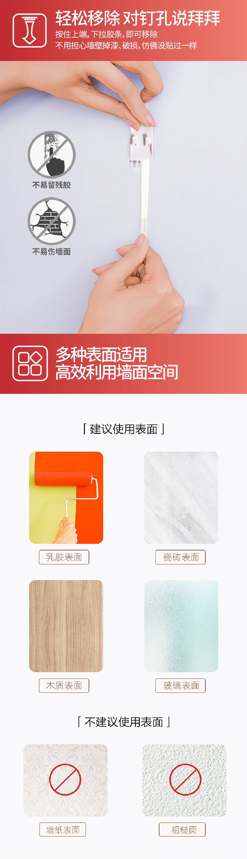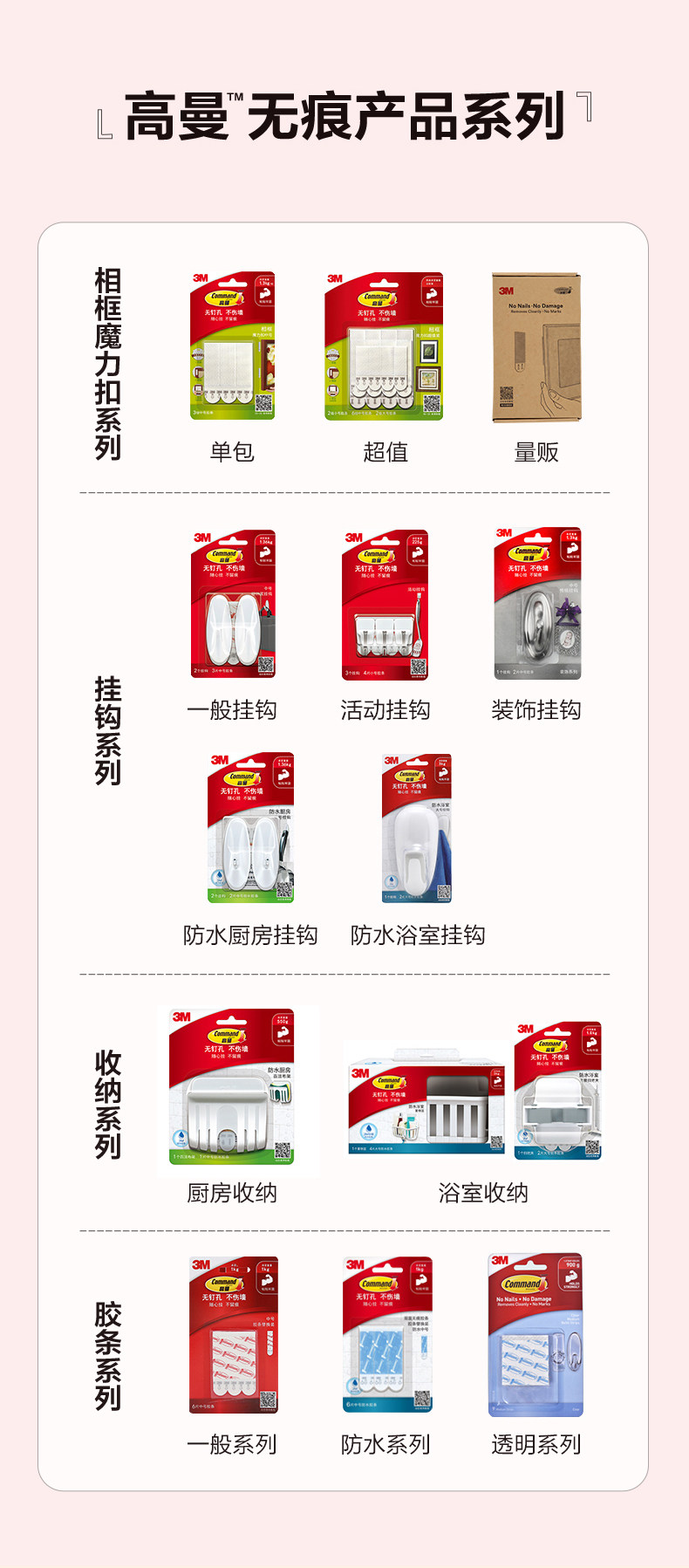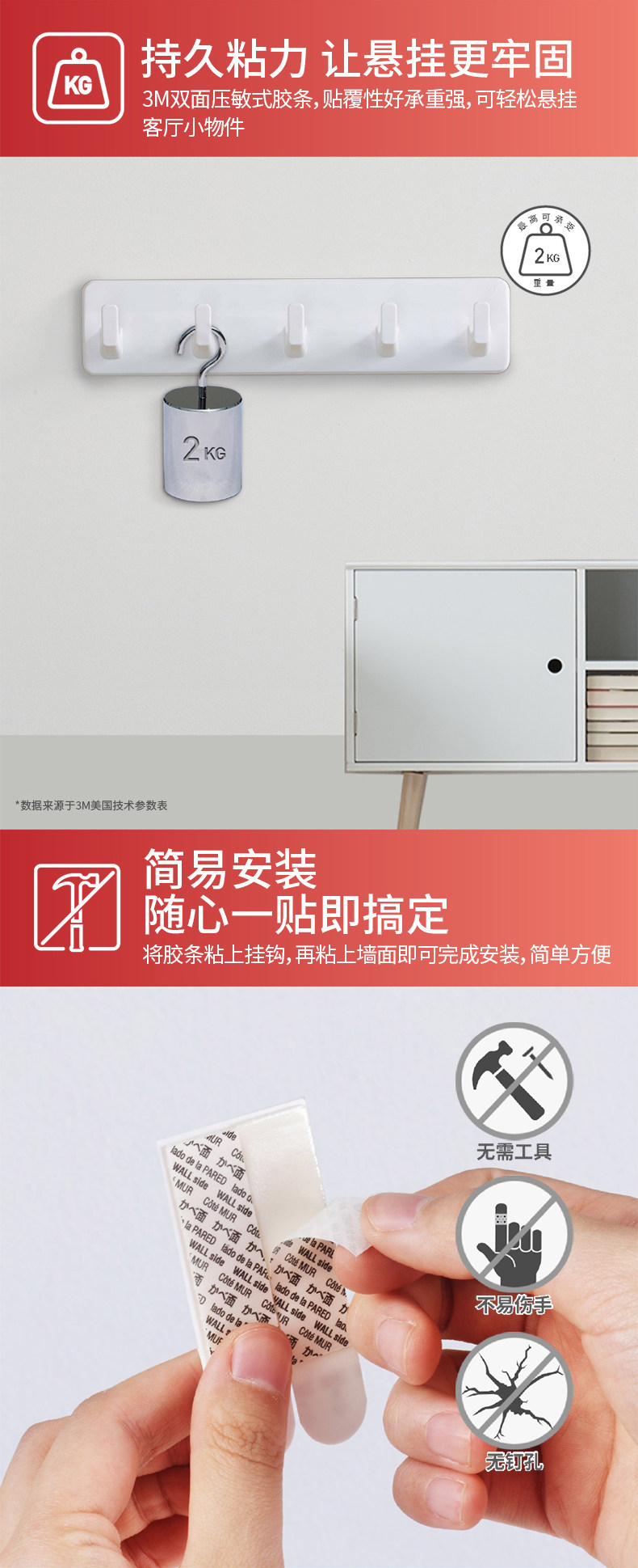 3M高曼常规挂钩无痕胶条多功能挂钩强力衣服挂钩卧室门后挂钩 CBG