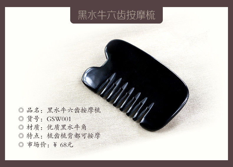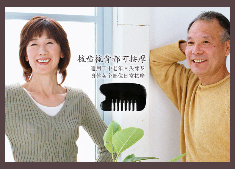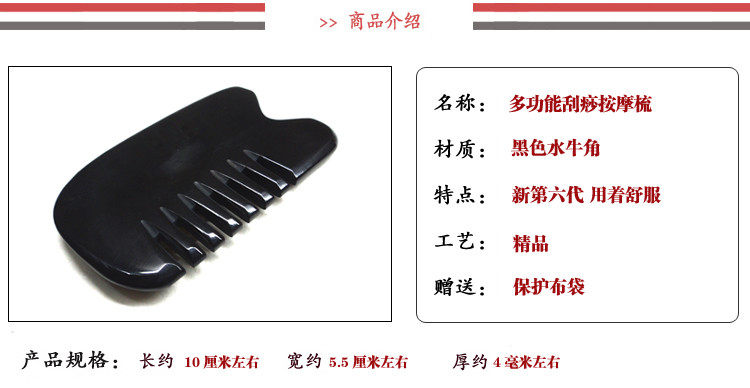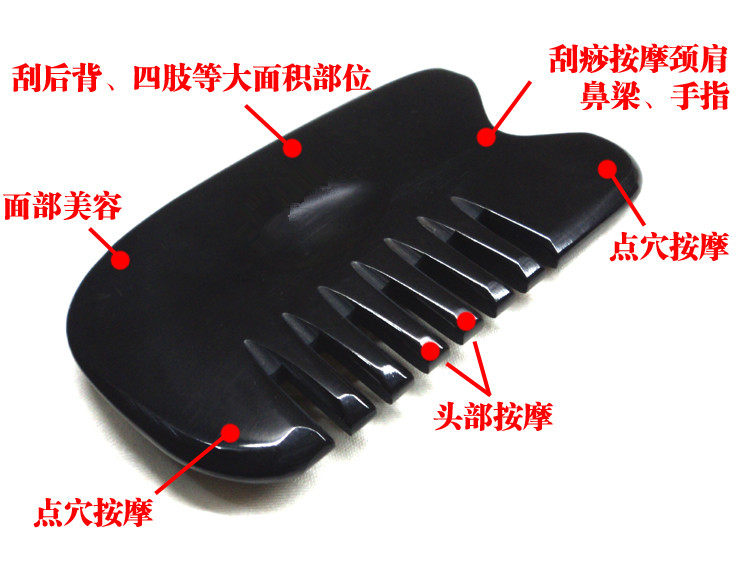 加厚黑水牛角刮痧板牛角刮痧梳子全息刮痧梳头部