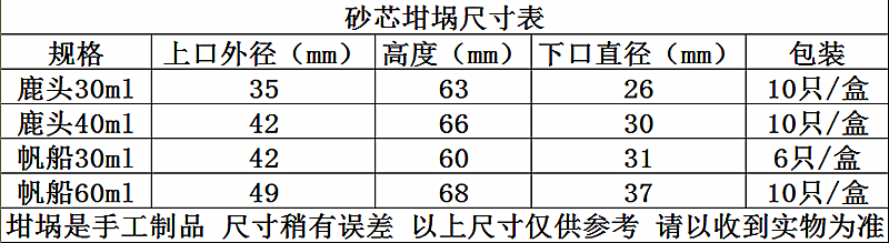 | 鹿头60ml 10只/盒(砂芯备注) | ¥ 登录可见 | ¥ 登录可见 | 0 件 | 10359361993 | |||