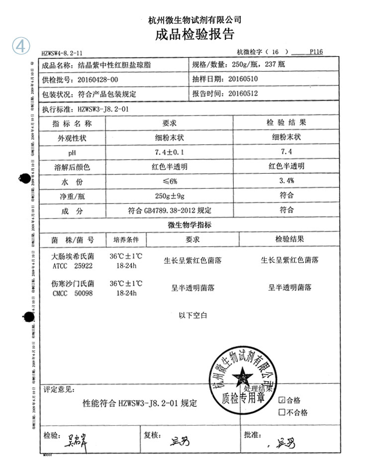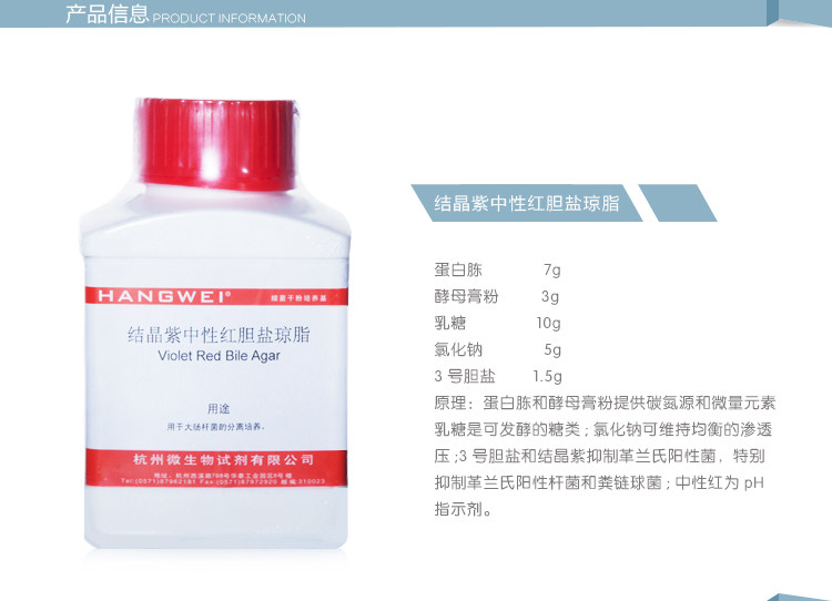 结晶紫中性红胆盐琼脂(VRBA) 培养基 250g GB标准 杭州微生物
