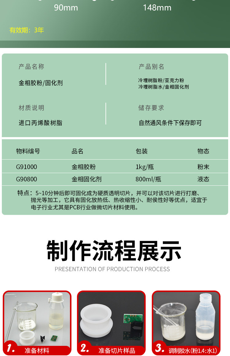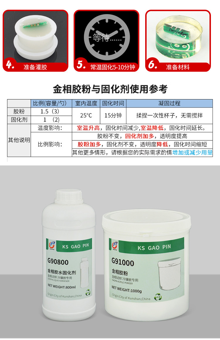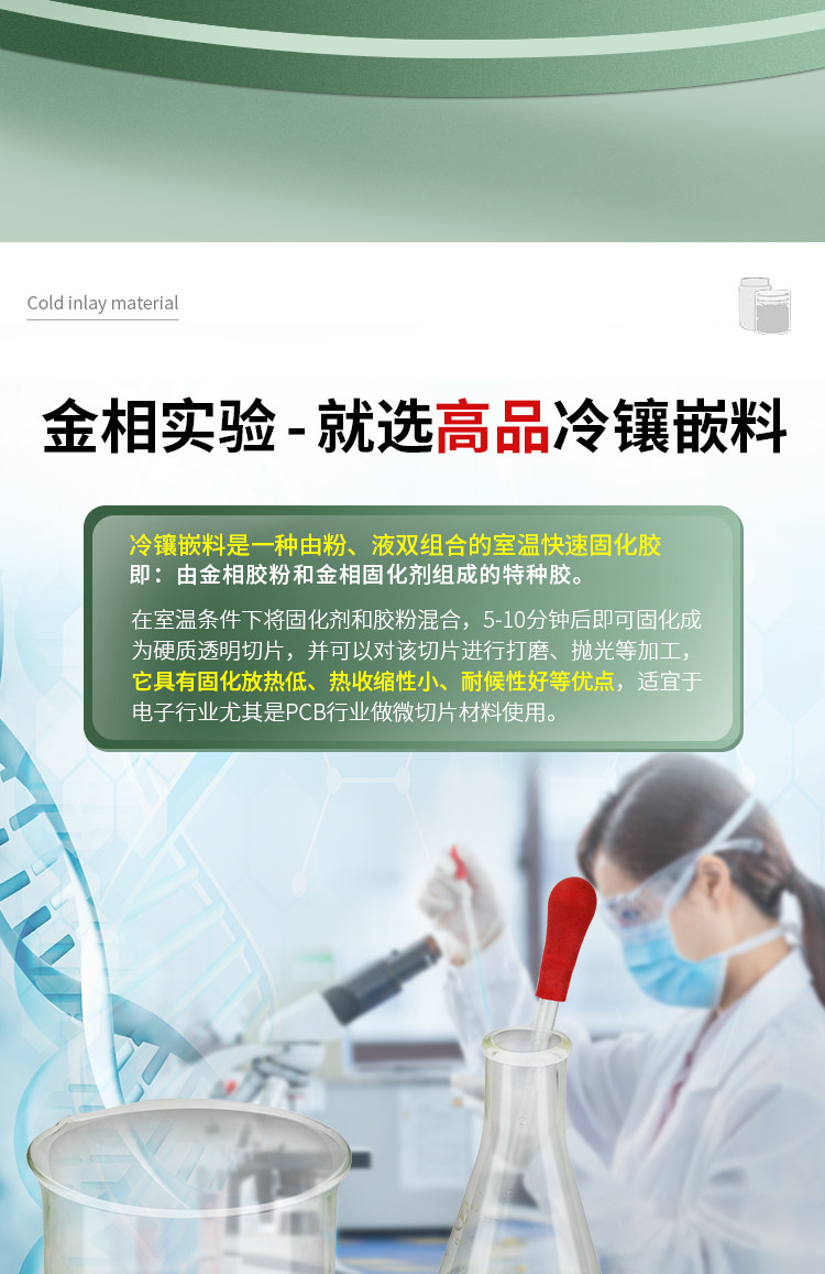金相冷镶嵌胶粉 固化剂切片胶粉 冷埋树脂粉 亚克力粉 快速镶嵌粉