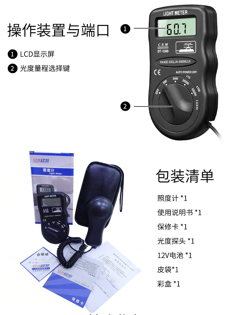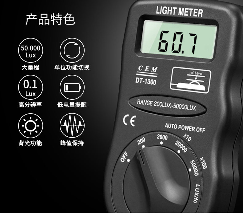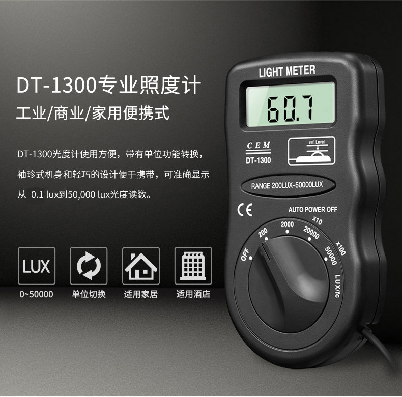 CEM华盛昌便携式测光仪照度仪亮度计光度计测光表照度计DT-1300