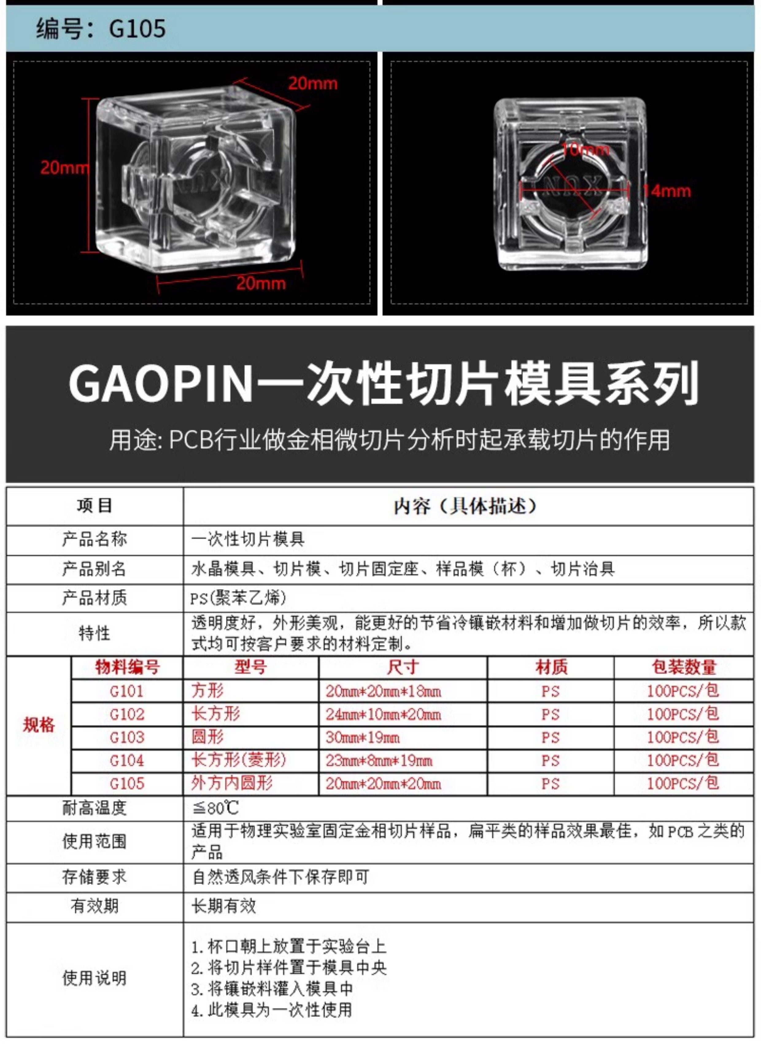 金相冷镶嵌模具扁形长方形孔水晶模子一次性切片模具透明切片治具