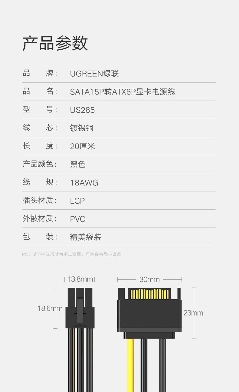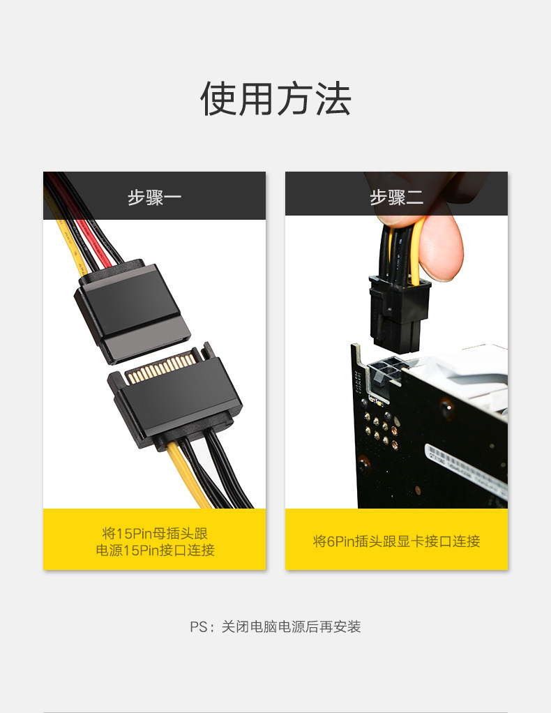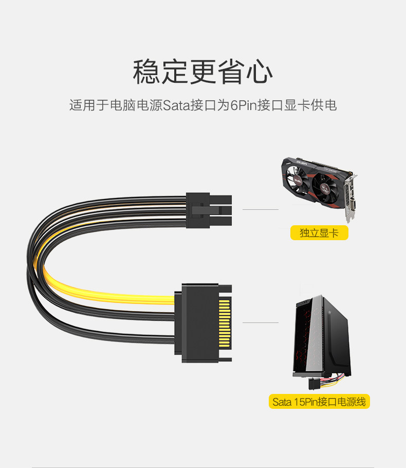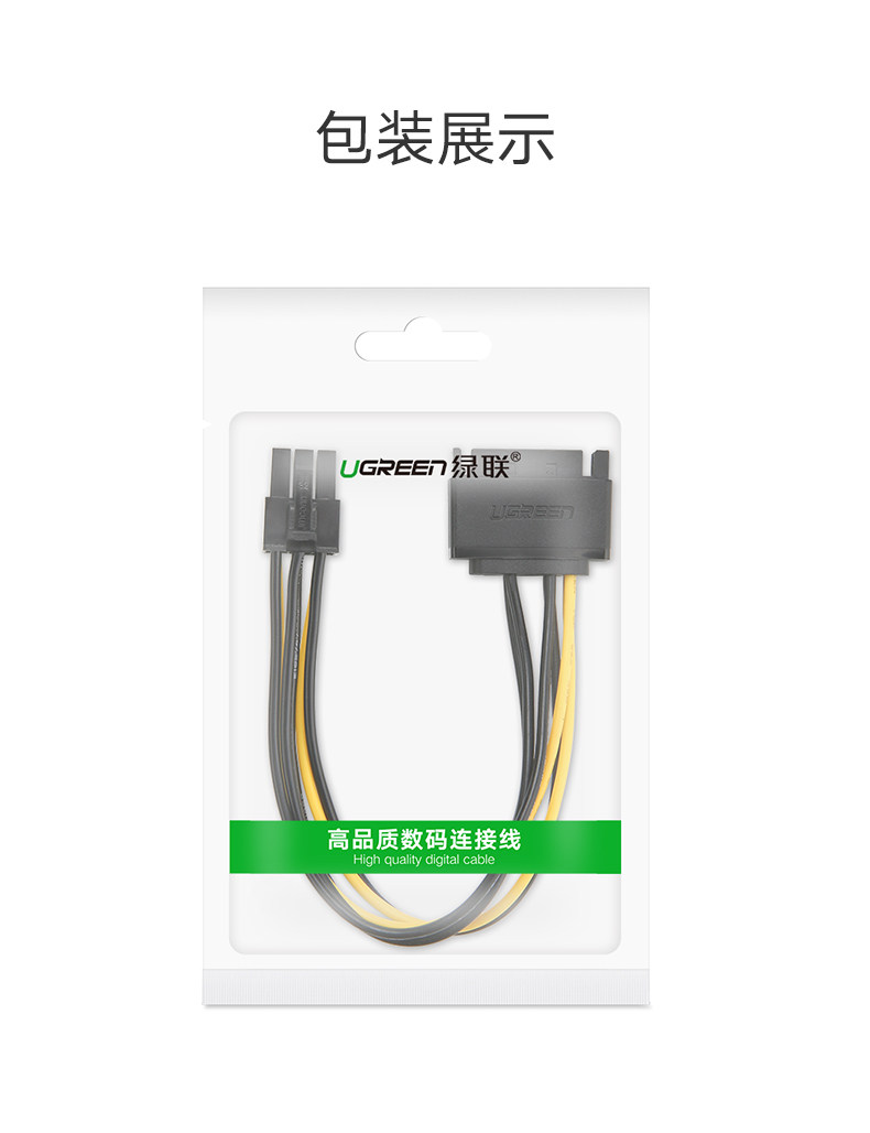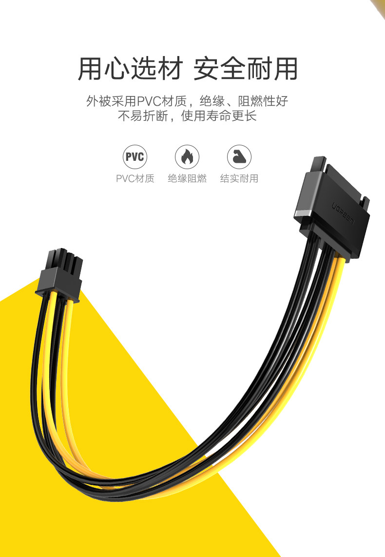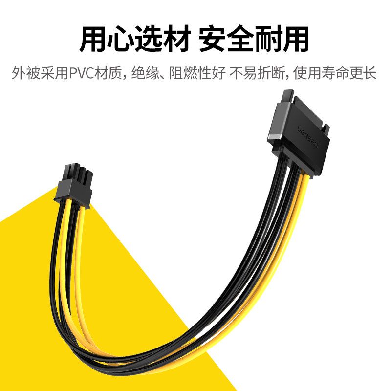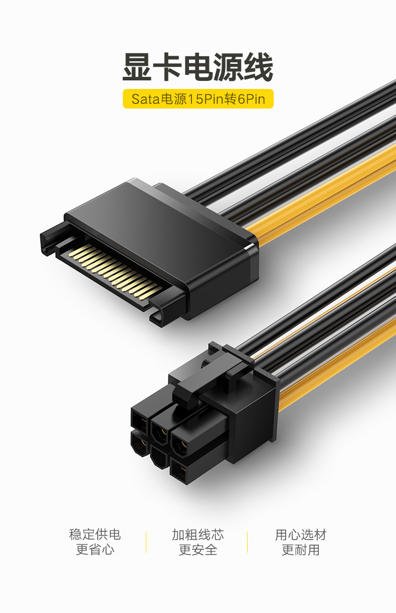 绿联SATA线15p转6pin反向转接线台式电脑主机外接连6针显卡电源线