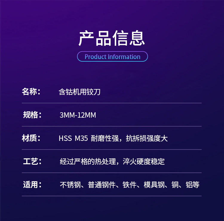 WF直柄机用铰刀 含钴机用铰刀不锈钢铰刀 3 4 5 6 7 8 10 12MM H8