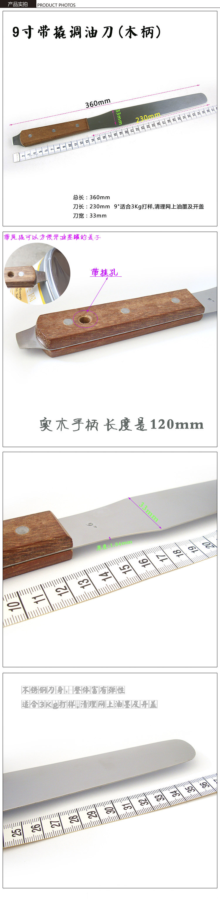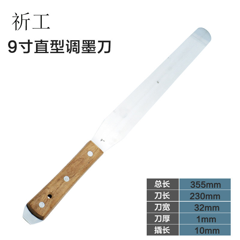 祈工不锈钢9寸带撬调油刀木柄调墨刀实验室工具调漆抹刀搅拌打样