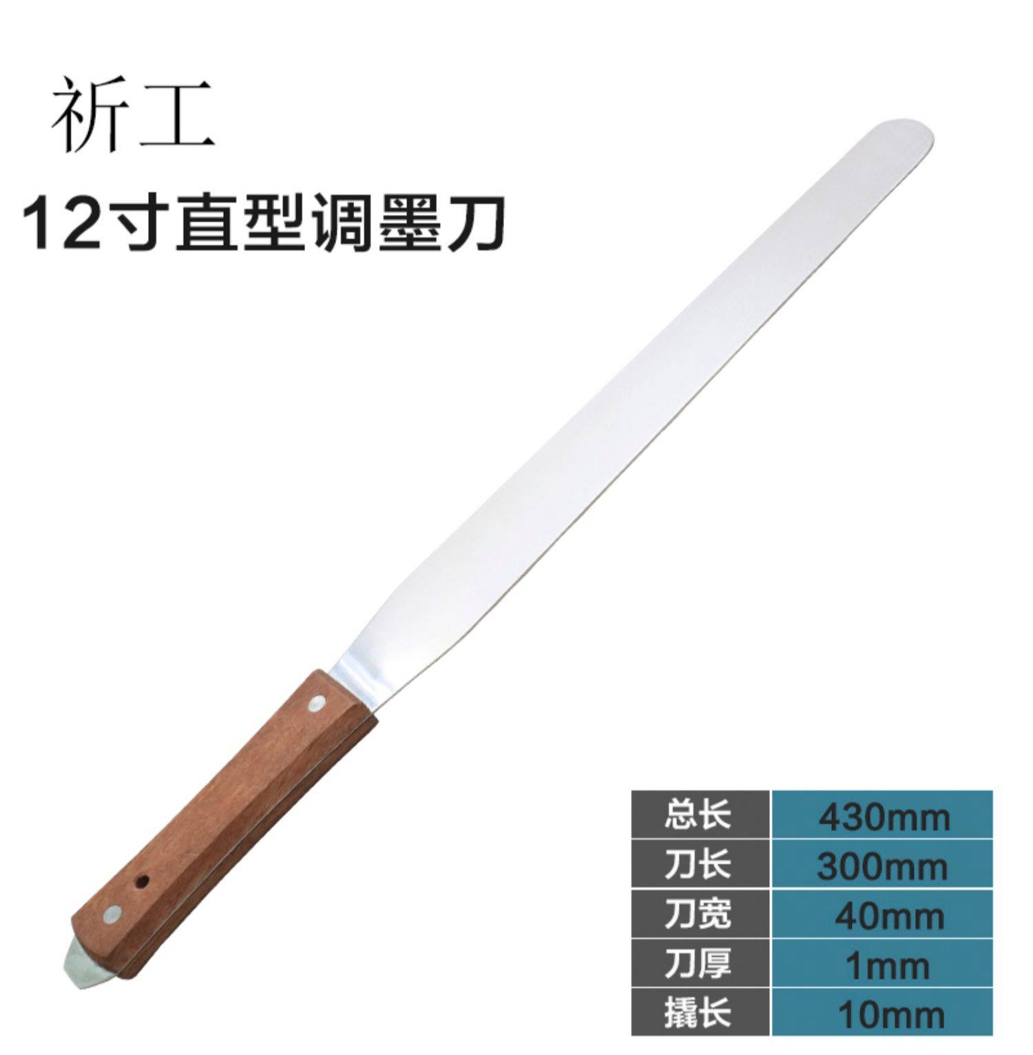 祈工不锈钢12寸带撬调油刀(木柄)调墨刀调油刀调漆刀抹刀有弹性
