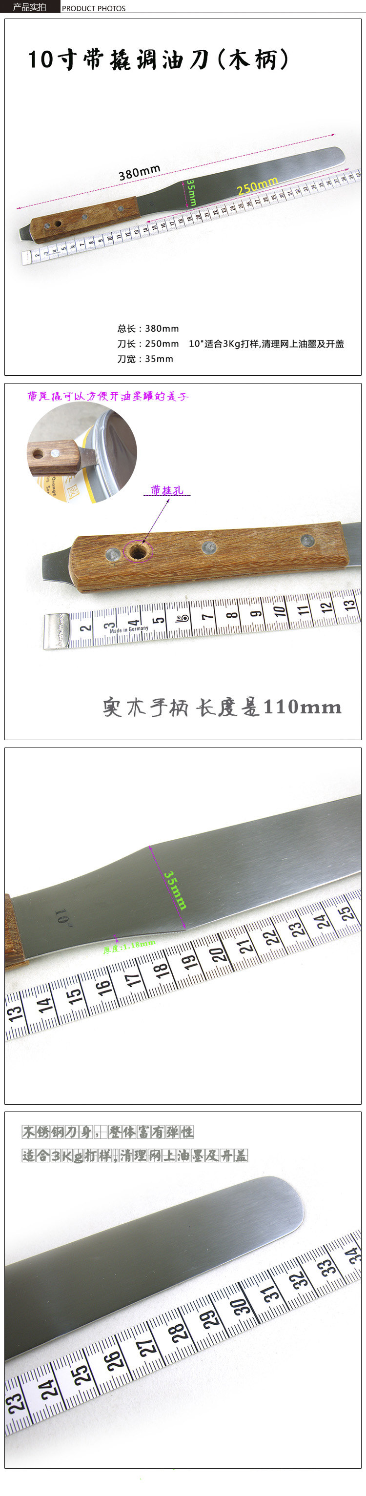 祈工不锈钢10寸带撬调油刀(木柄)调墨刀调漆刀调油刀烘培抹刀