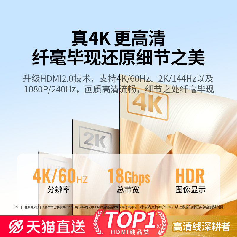 | 绿黑头【4K+HDR高清 还原色彩之美 】 | 3米 | ¥ 登录可见 | ¥ 登录可见 | 0 件 | 10773105194 | |||