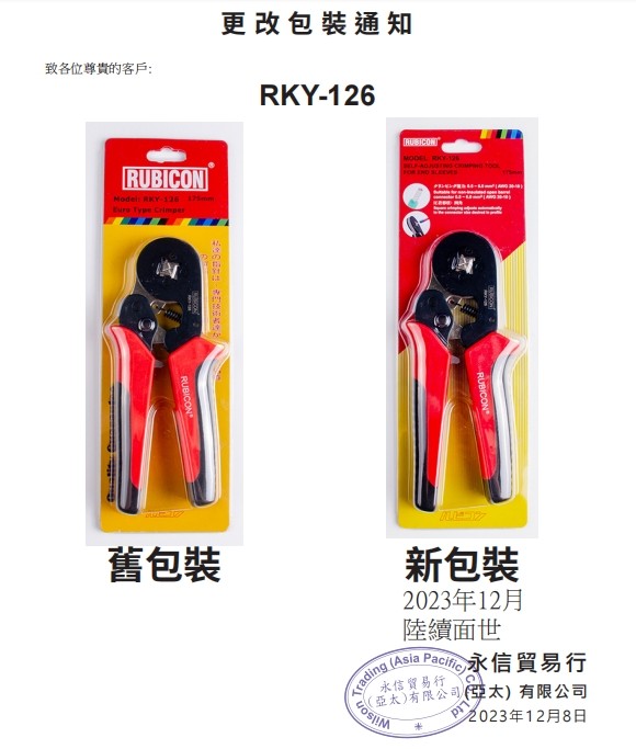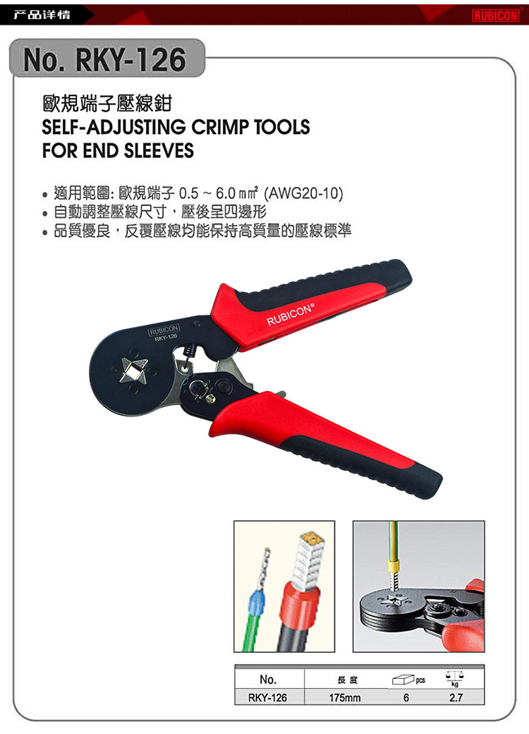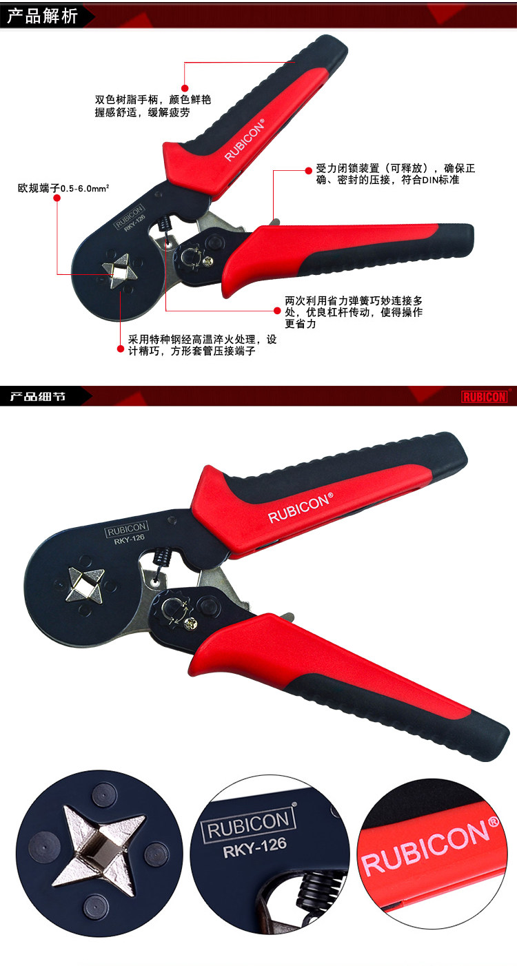 原装正品 日本罗宾汉 RUBICON RKY-126 欧式端子压线钳 压接钳