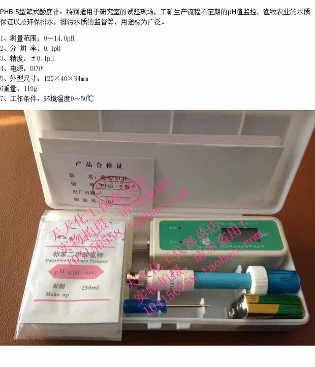 杭州奥立龙 便携式酸度计 笔式PH计 数显 PHB-5 0.1级