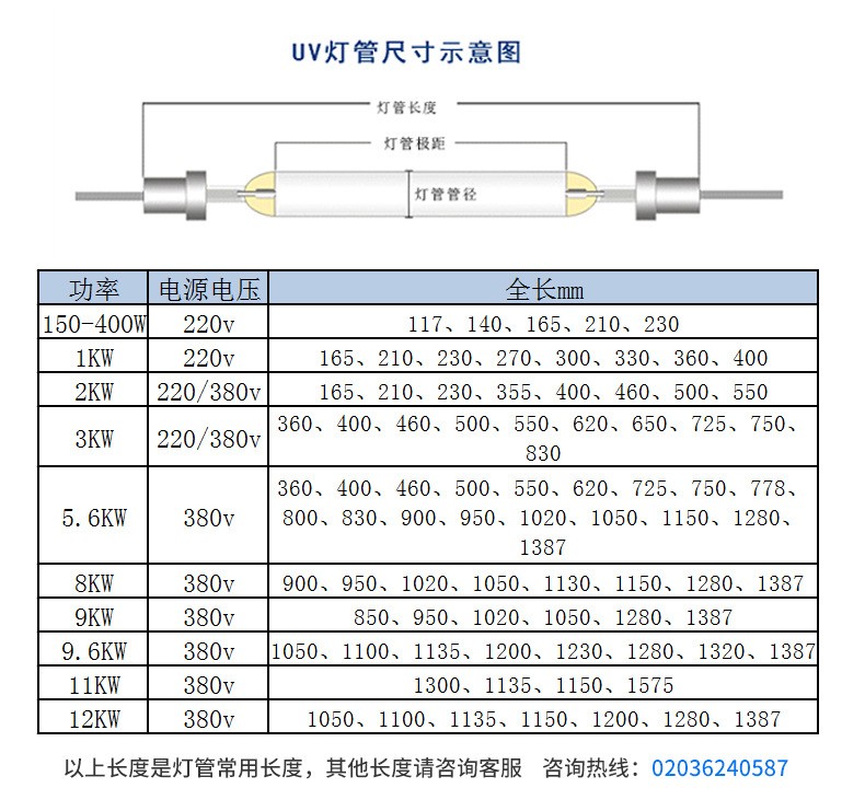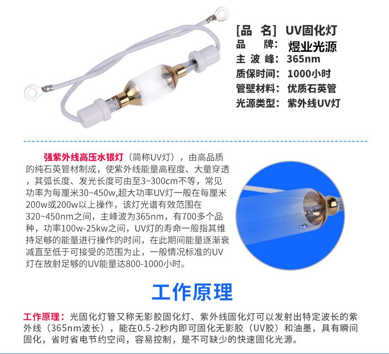 厂家促销UV光固化机灯管 UV紫外线固化灯UV固化灯水银 高压汞灯