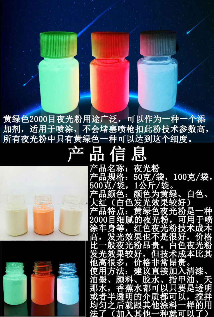 夜光粉2000目发光粉白色荧光粉可制喷漆涂料汽车夜光模型自发光漆