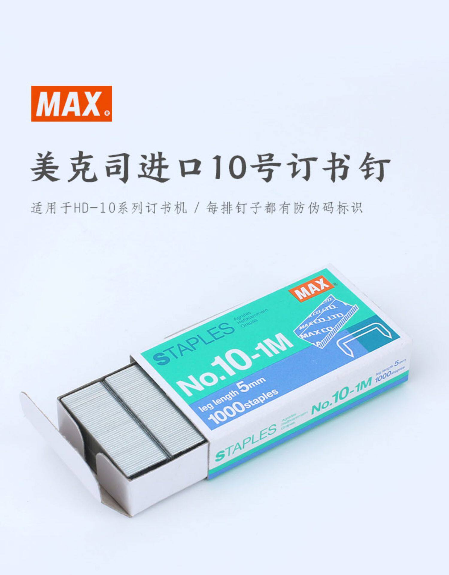 日本美克司MAX订书钉NO.10-1M 适用于HD-10/10D小号钉书针