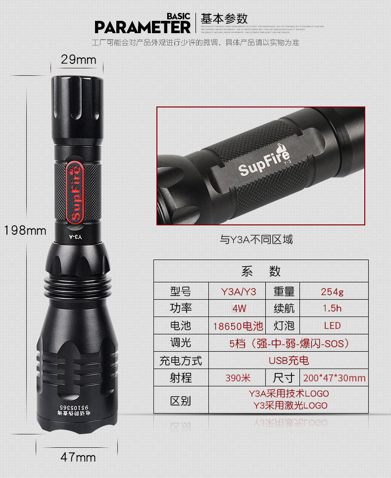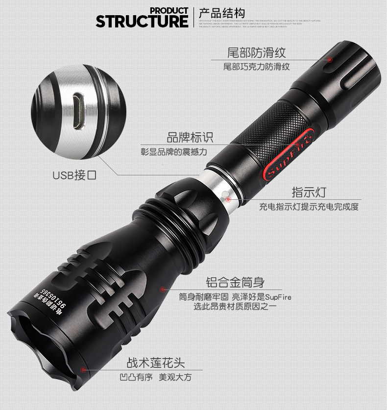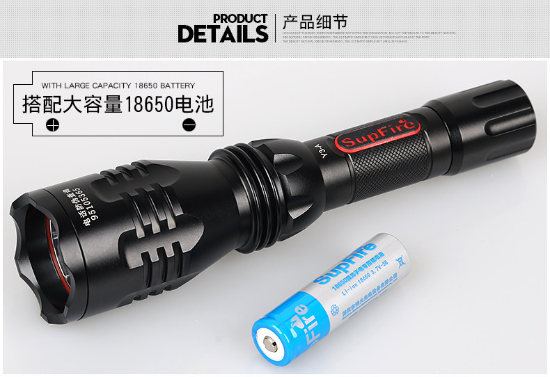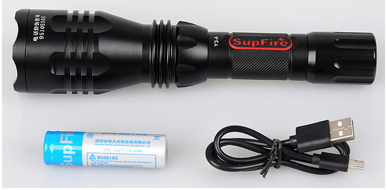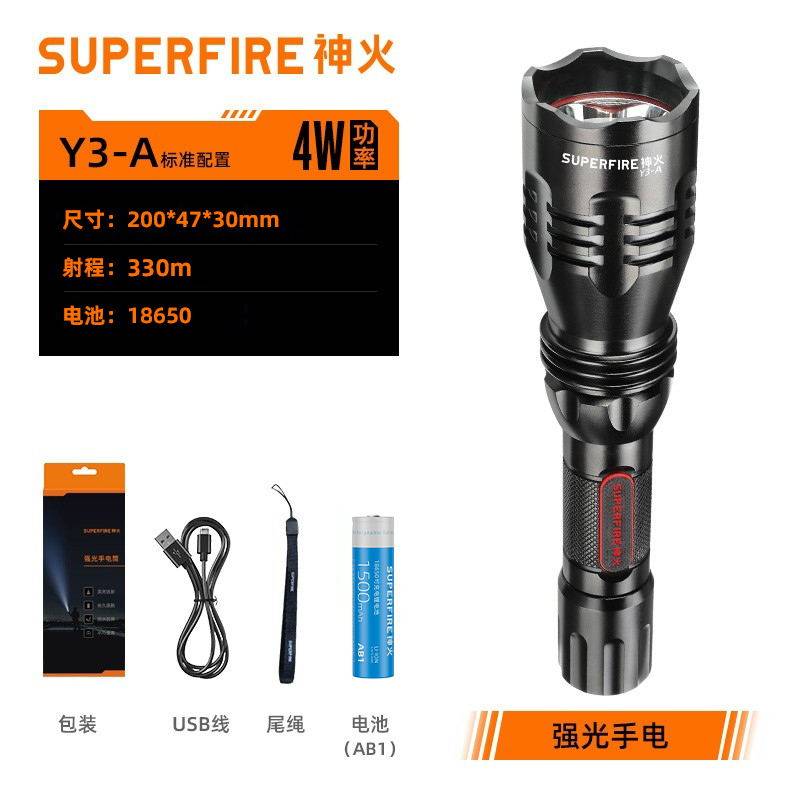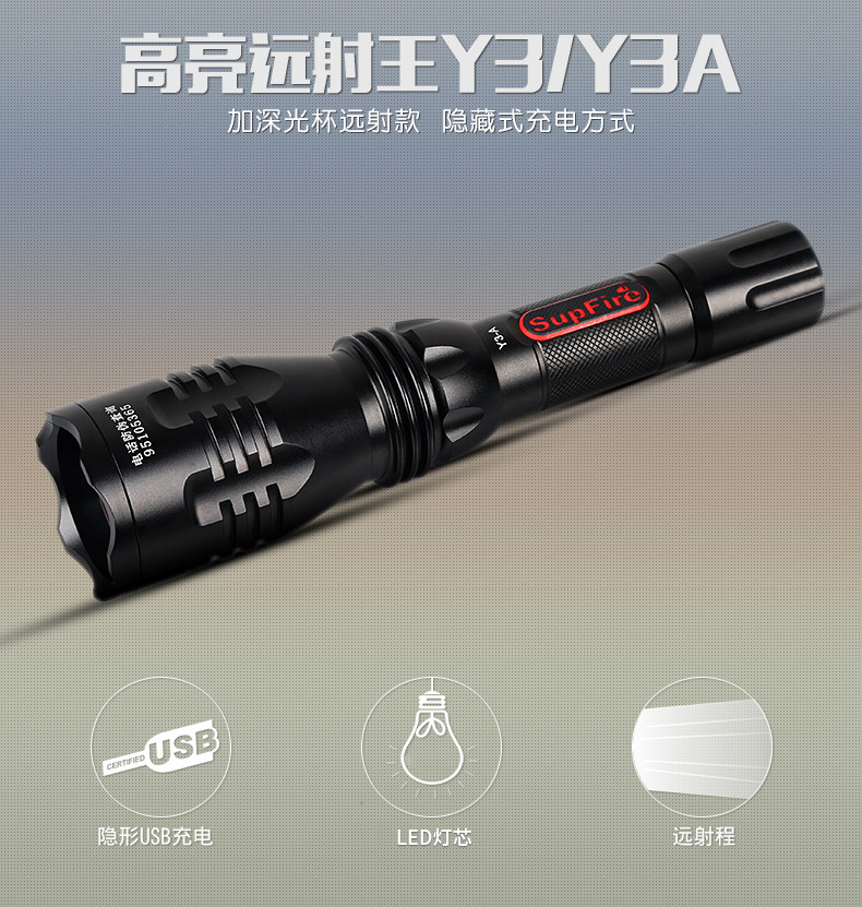 SupFire 神火Y3A 强光手电筒 充电式聚光 LED远射王 车充探照灯