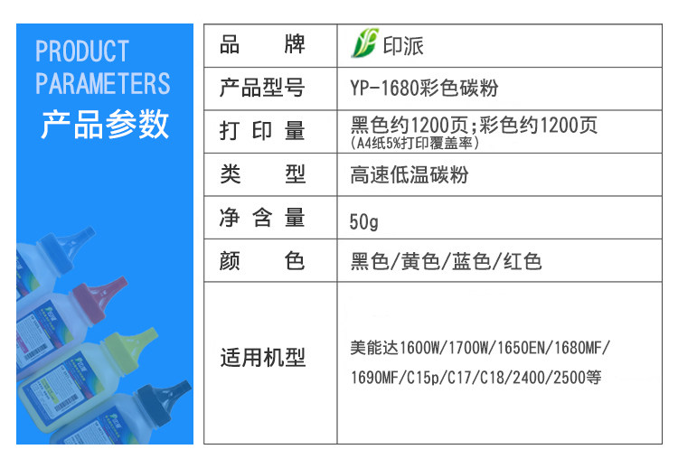 适用美能达1600W碳粉1680MF 1700W 1650EN 1690MF C15p C17墨粉18